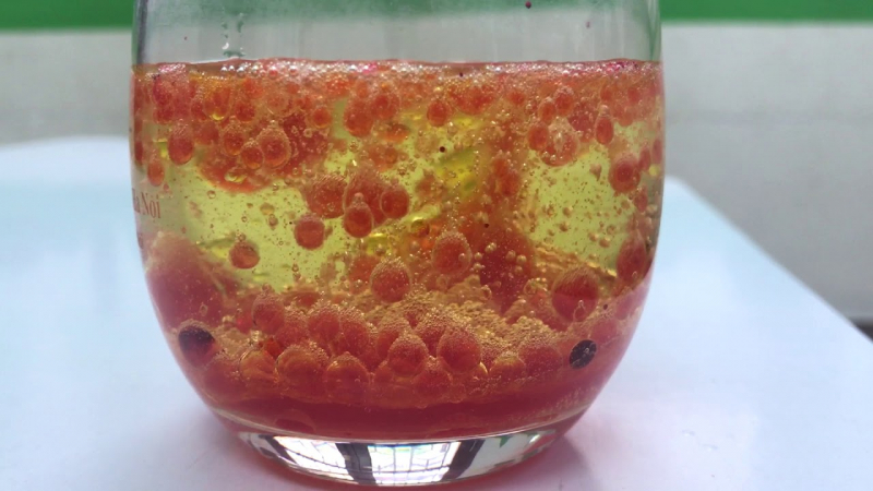 - Khi phẩm mà !important;u dưới đáy chai được làm nóng lên thì dầu sẽ trở nên nhẹ hơn dầu và di chuyển lên phía trên. Khi chúng nguội dần sẽ lại di chuyển xuống dưới tạo thành dòng dịch chuyển cực đẹp.