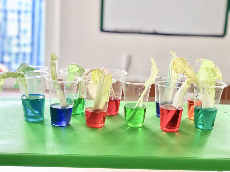 Giải thí !important;ch: Do các mao quản của lá cây cải thảo hoạt động đưa nước đi vào các ống nhỏ của lá cây làm cho lá cải thảo bị cắm vào những cốc có màu thực phẩm đó sẽ bị chuyển theo màu.