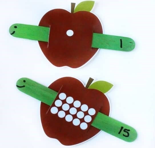 Bước 2: Trang trí !important; các que gỗ và tô màu thành con sâu. một bên vẽ đầu còn bên kia sẽ đánh số từ 1 đến 15 (hoặc nhiều hơn nếu thích)