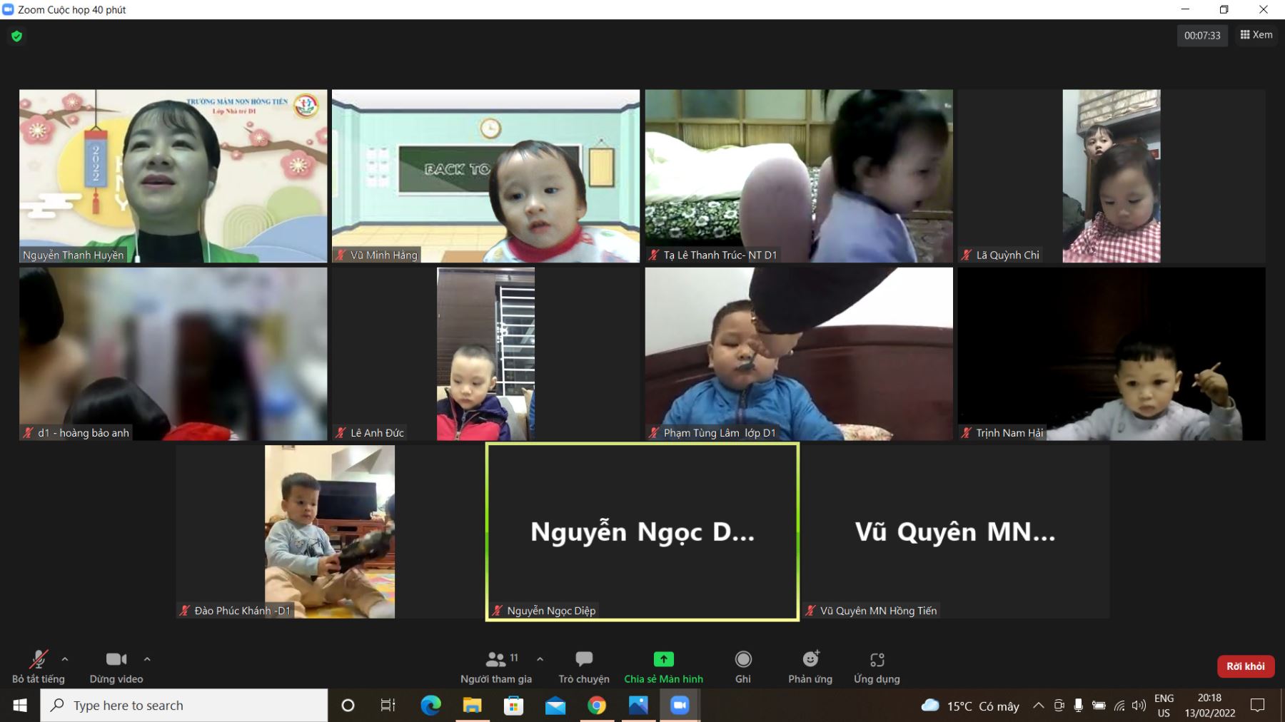 Và hôm nay lớp nhà trẻ D1 lần đầu gặp mặt qua Zoom giữa cô và phụ huynh cùng các bé diễn ra thật là vui. Các bé thì ríu rít như chim khi gặp cô và các bạn. Cô trò cùng nhau vận động theo nhạc bài hát Baby Shark thật ngộ nghĩnh vui nhộn. Ngoài ra các bé còn hồn nhiên chia sẻ với cô và các bạn về việc Tết được đi chơi nhiều nơi, được đi chúc Tết ông bà, được ông bà lì xì,….