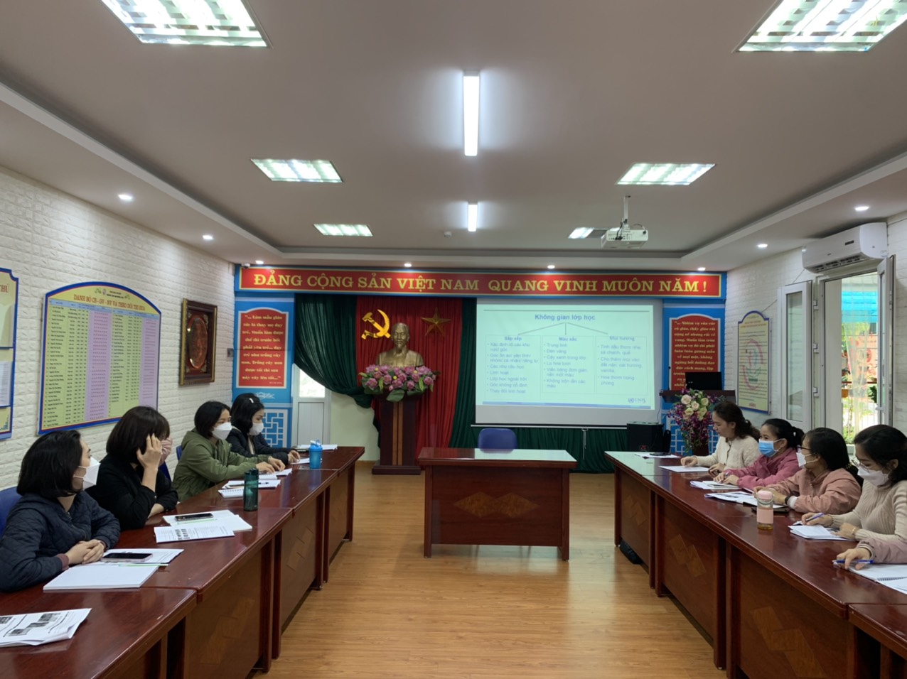 Nhằm triển khai tới 100% giáo viên trong trường về chuyên đề: Xây dựng môi trường lớp theo phương pháp UNIS. Sau buổi tập huấn vào ngày 20/01/2022 do cô giáo Trần Bảo Ngọc hướng dẫn. Tổ chuyên môn trường mầm non Hồng Tiến được sự đồng ý của BGH nhà trường đã tổ chức tập huấn chia sẻ lại chuyên đề với các đồng chí giáo viên chưa được tham dự vào ngày 27/01/2022. Buổi tập huấn đã nhận được sự hưởng ứng tích cực của các đồng chí giáo viên trong nhà trường. Tất cả đều hào hứng tham gia chia sẻ và trao đổi với tổ chuyên môn về nội dung của chuyên đề cũng như các bài học ý nghĩa mà giáo viên rút ra được sau buôi tập huấn. Với những chia sẻ có tính thực tế cao của các đồng chí giáo viên cũng như sự trao đổi của BGH nhà trường đã mang lại những tín hiệu tích cực trong tư tưởng của giáo viên về việc xây dựng môi trường lớp học tại lớp mình đang giảng dạy. Nội dung chia sẻ trong buổi tập huấn của nhà trường đã được đồng chí báo cáo viên lồng ghép khéo léo, đi vào đúng thực trạng trang trí lớp học của nhà trường. Vì vậy buổi tập huấn đã mang lại hiệu quả cao khi giáo viên các lớp có thể tự đưa ra đánh giá về cách trang trí của lớp mình và từ đó rút ra những thay đổi cho mình trong cách trang trí lớp sau này. Và 100% giáo viên của nhà trường đều đồng lòng sẽ chỉnh sửa lại những thiếu sót của mình trong thời gian sắp tới. Đây là một thành công với tổ chuyên môn trường mầm non Hồng Tiến khi mà buổi tập huấn đã mang tới những thay đổi trong tư tưởng trang trí của các đồng chí giáo viên trong nhà trường.