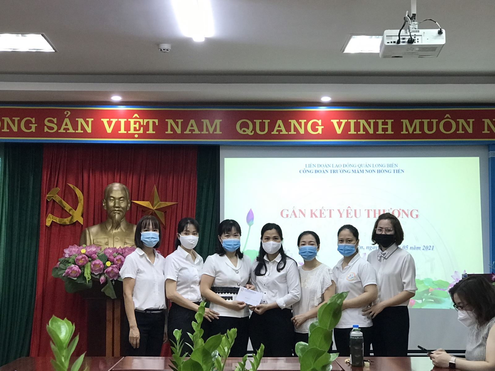 Sau khi nhận được thông tin về gia đình đồng chí Xuân, Ban Chấp hành công đoàn trường mầm non Hồng Tiến đã đến gia đình thăm hỏi và động viên giúp đỡ kịp thời, đồng thời trích từ quỹ công đoàn, kêu gọi toàn thể quỹ từ thiện từ các lớp quyên góp ủng hộ kinh phí giúp đỡ gia đình vượt qua khó khăn, hoạn nạn và cử đại diện các tổ công đoàn đến giúp đỡ gia đình làm lại mái nhà dọn dẹp và khắc phục hậu quả.