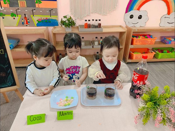 Thí nghiệm stem cho trẻ mầm non với kẹo mentos và coca
