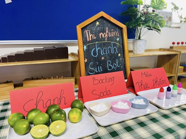 Khi nhỏ giấm lên bức tranh vẽ bằng hỗn hợp muối nở trộn nước màu chúng ta có thể nghe thấy âm thanh và nhìn thấy bong bóng trên bề mặt giấy. Khi đặt tay gần bề mặt giấy có thể cảm nhận sự phình lên tạo thành bóng bóng.