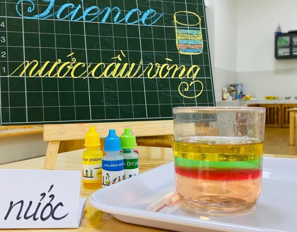 Thí nghiệm stem cho trẻ mầm non với dầu và nước