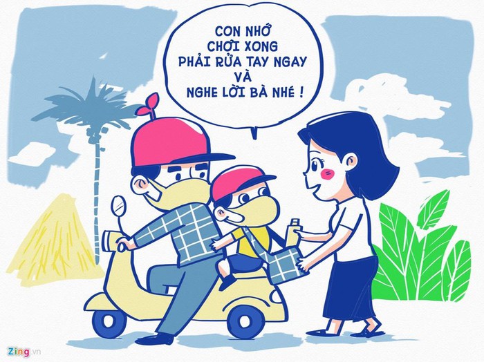 Luôn mang nước rửa tay khô khi ra ngoài: Rửa tay thường xuyên khi tiếp xúc với các vật dụng dùng chung, trước khi ăn và sau khi đi vệ sinh là một trong những giải pháp phòng ngừa Covid-19 được Bộ Y tế khuyến cáo. Trẻ em vốn hiếu động, nghịch ngợm nên rất dễ tiếp xúc với các môi trường, vật dụng thiếu vệ sinh. Khi không được rửa sạch, tay bé sẽ tích tụ hàng nghìn vi trùng và nếu chạm vào mắt và mũi, sẽ tạo điều kiện các vi trùng, vi khuẩn này xâm nhập vào cơ thể gây bệnh. Để trẻ nhận thức được tầm quan trọng của việc rửa tay, mẹ cần hướng dẫn bé rửa tay trước khi ăn, sau khi đi vệ sinh và chuẩn bị sẵn nước rửa tay khô để bé tự giác bảo vệ bản thân.
