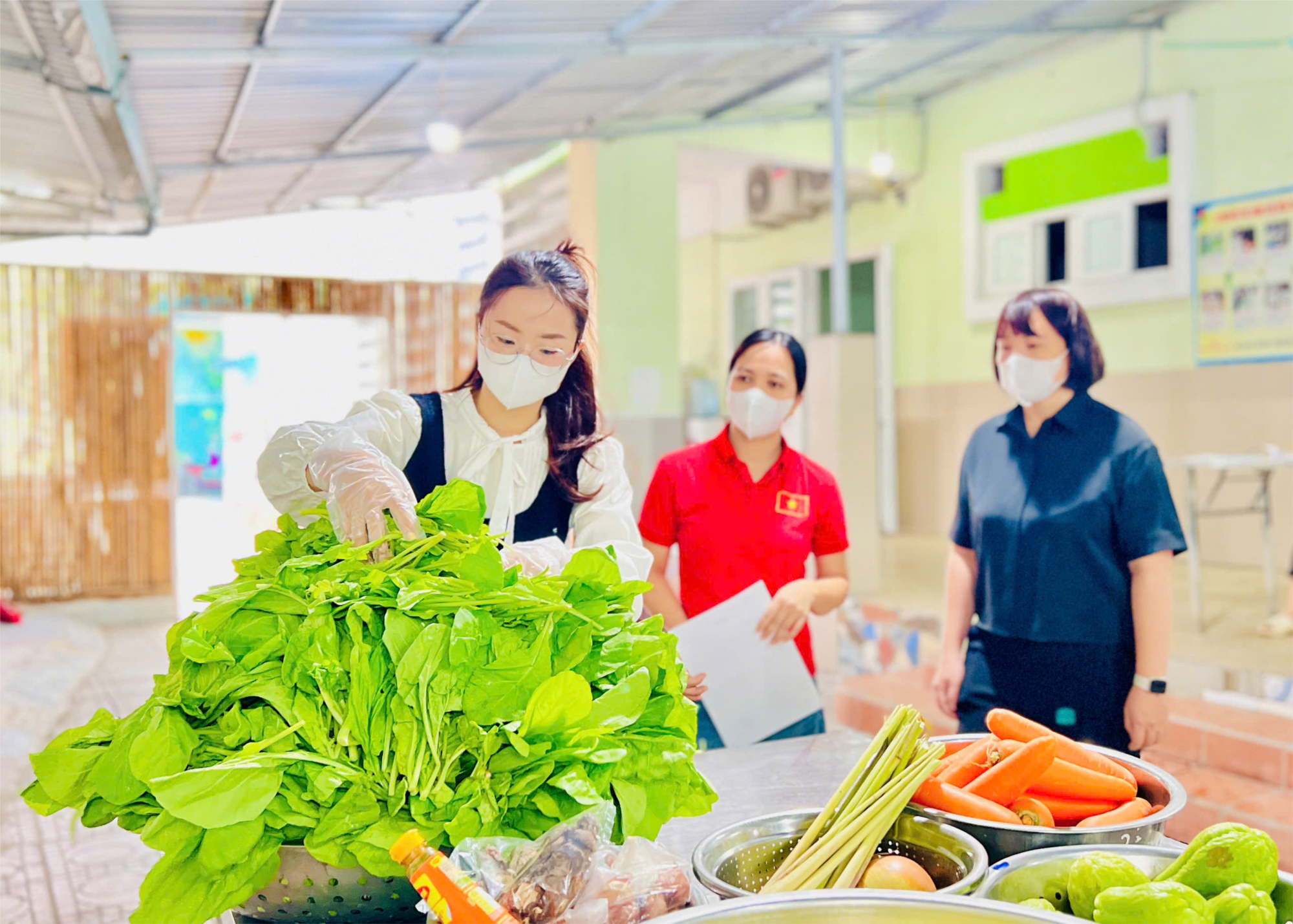 Sáng ngày 28/10/2025, nhà trường mời đại diện Ban phụ huynh lớp Nhà trẻ D1 đến để tham gia kiểm tra giám sát. Quy trình giao nhận thực phẩm luôn được thực hiện đầy đủ các thành phần bao gồm: Đại diện ban giám hiệu, nhân viên kế toán, nhân viên y tế, giáo viên và phụ huynh thực hiện quy trình giao nhận thực phẩm, kiểm tra số lượng, chất lượng thực phẩm trước khi ký nhận và chế biến.