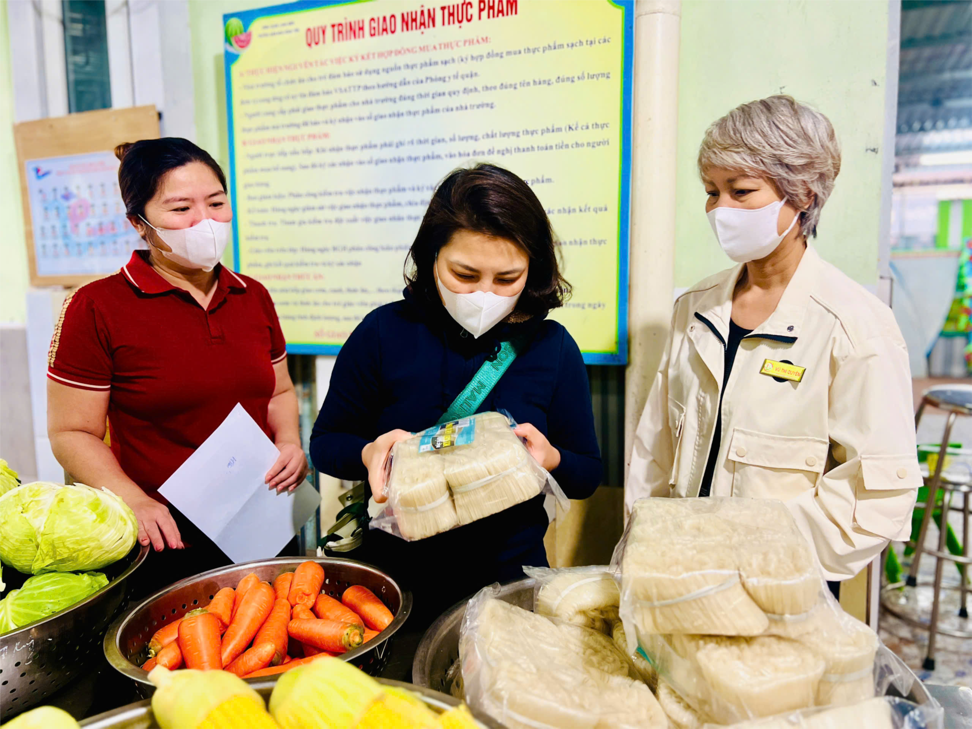 Sáng ngày 2/12/2025, nhà trường mời đại diện Ban phụ huynh lớp Mẫu giáo nhỡ B2 đến để tham gia kiểm tra giám sát. Quy trình giao nhận thực phẩm luôn được thực hiện đầy đủ các thành phần bao gồm: Đại diện ban giám hiệu, nhân viên kế toán, nhân viên y tế, giáo viên và phụ huynh thực hiện quy trình giao nhận thực phẩm, kiểm tra số lượng, chất lượng thực phẩm trước khi ký nhận và chế biến.