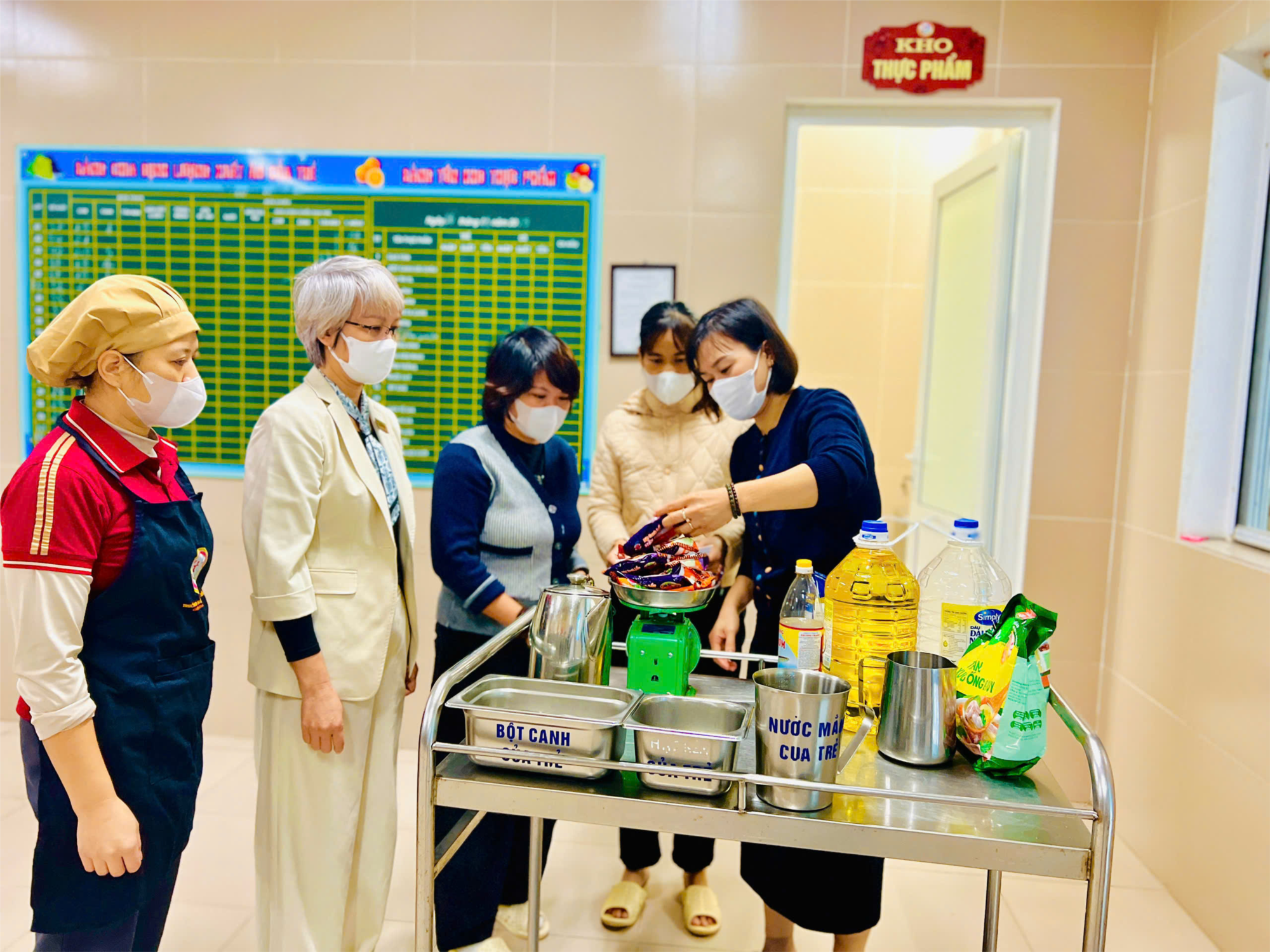 Hôm nay, ngày 27/11/2025 buổi giao nhận thực phẩm có đủ thành phần: ban giám hiệu nhà trường, nhân viên y tế, nhân viên nhà bếp, giáo viên, đại diện phụ huynh học sinh lớp MGL A4 cùng kiểm tra về chất lượng, số lượng thực phẩm, có ký xác nhận đầy đủ vào sổ giao nhận thực phẩm.