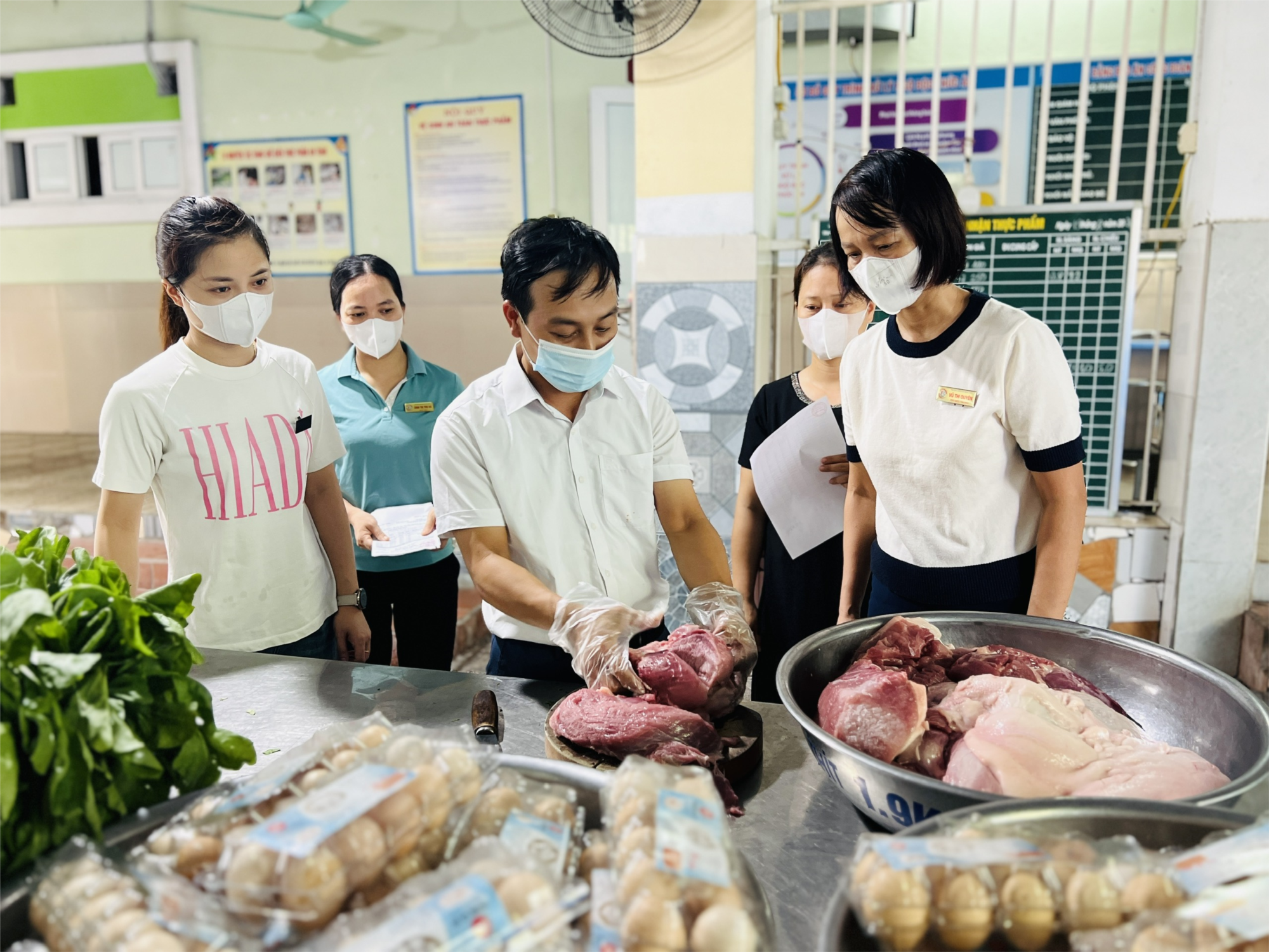 Nhà trường cũng thành lập ban giám sát đầy đủ thành phần: nhân viên nuôi dưỡng, nhân viên y tế, đại diện giáo viên, thanh tra nhân dân, Ban giám hiệu và đại diện cha mẹ học sinh cùng giao nhận với nhân viên giao hàng, kiểm tra về chất lượng, số lượng thực phẩm, có ký xác nhận đầy đủ vào sổ giao nhận thực phẩm.