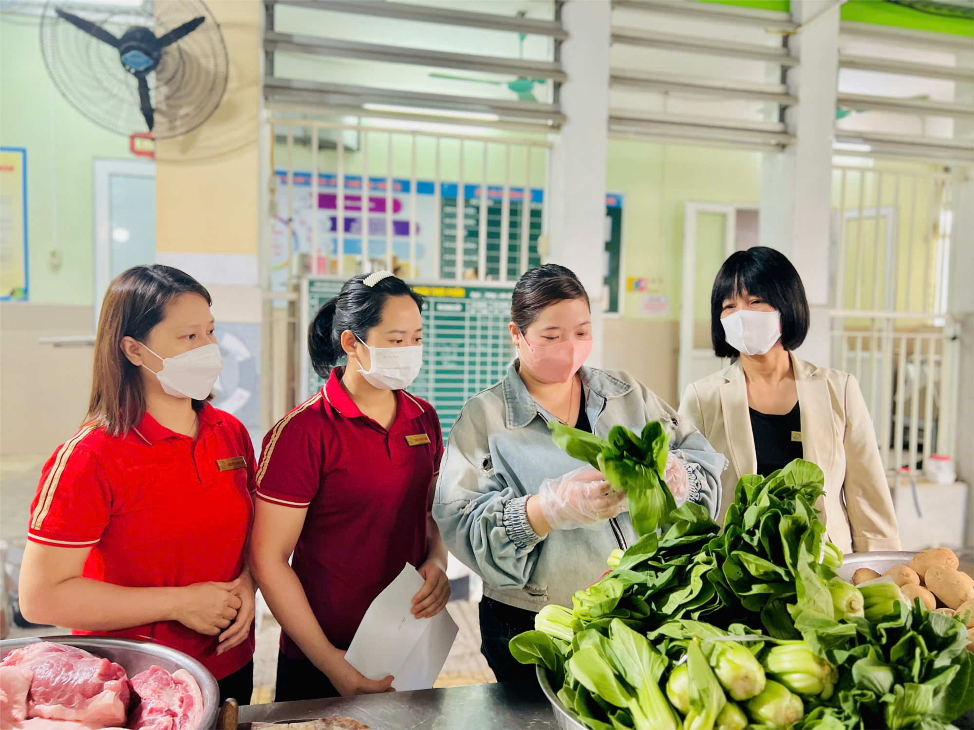 Nguồn thực phẩm cung cấp cho bếp ăn được đảm bảo nguồn gốc rõ ràng từ các nhà cung ứng và có giấy kiểm dịch thực phẩm an toàn. Khi giao nhận thực phẩm có đầy đủ các hóa đơn chứng từ. Thực phẩm khi tiếp nhận phải tươi ngon, rau củ không héo úa, thịt cá còn tươi không có mùi ôi, thiu…
