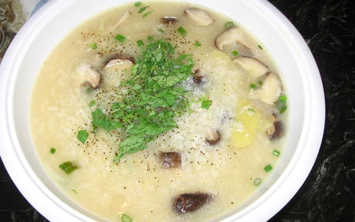 Nguyên liệu: 30g gạo, đậu xanh bỏ vỏ 20g, 3 quả trứng cút, nấm rơm 20g, 1 muỗng canh dầu ăn, gia vị.