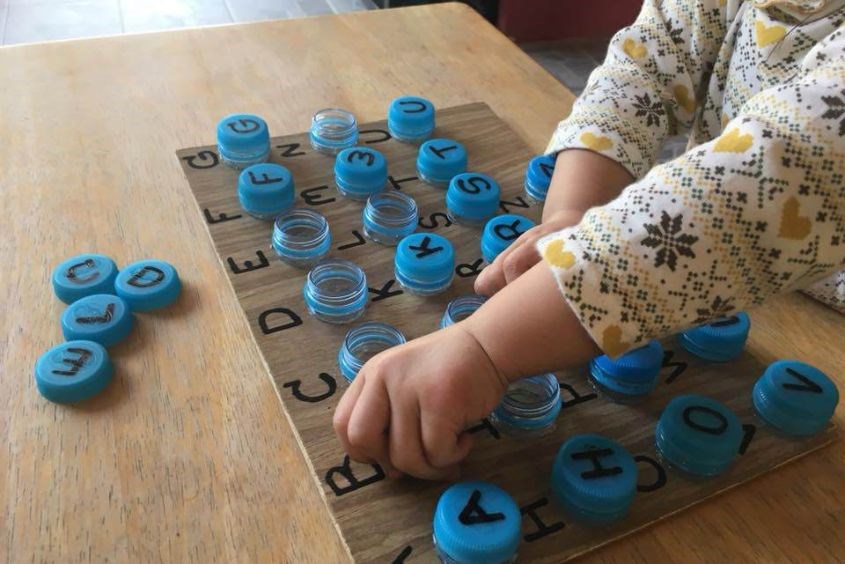 Khi chơi cùng bé, ba mẹ chỉ cần hỏi “Chữ A đâu con nhỉ?”, bé sẽ tự động tìm kiếm “chữ A” trên bảng và đặt nắp chai vào đúng vị trí. Với cách làm đồ chơi bằng chai nhựa này, ba mẹ vừa có thể dành nhiều thời gian hơn với con, vừa có thể giúp con rèn luyện tư duy và khả năng phản xạ nhanh chóng.