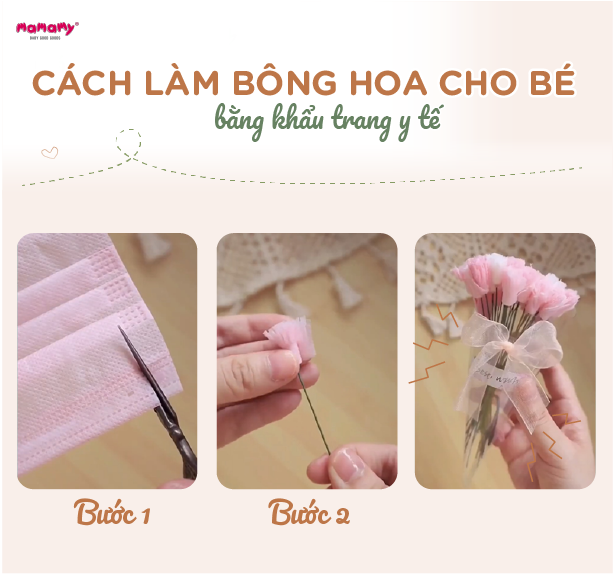 Cách làm bông hoa cho bé bằng khẩu trang y tế