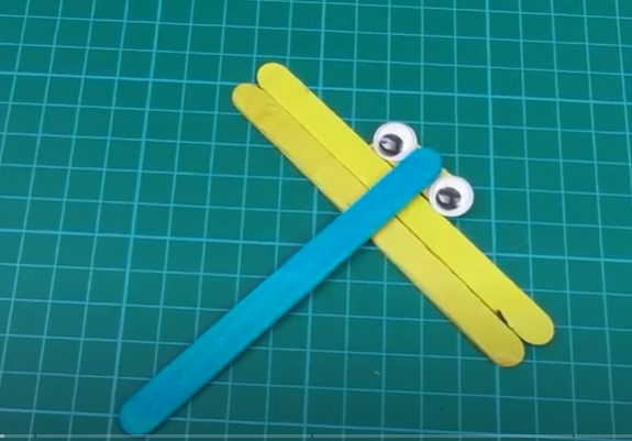 - Bước 2: Gắn 2 mắt gấu bông cho con chuồn chuồn.