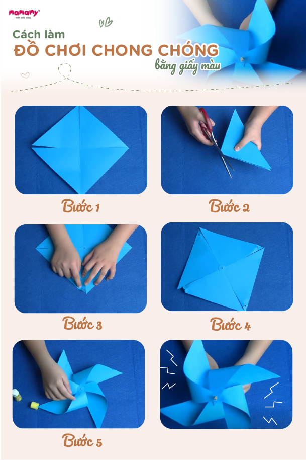 Cách làm đồ chơi chong chóng bằng giấy màu