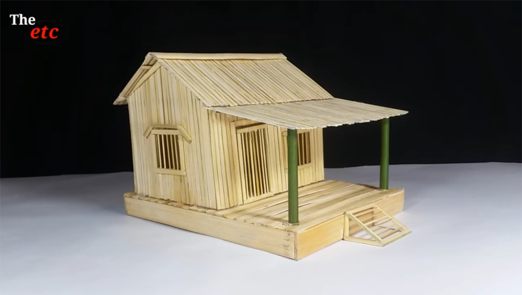 Mô hình ngôi nhà – một trong những cách làm đồ chơi từ tre khiến bé thích mê.