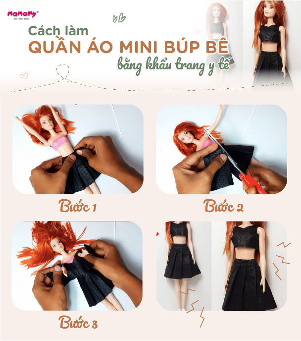 Cách làm quần áo mini cho búp bê bằng khẩu trang y tế