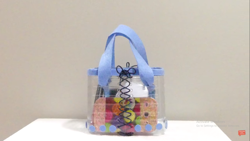 Vậy là chiếc túi xách làm từ can nhựa siêu bền đẹp đã xong rồi mẹ ha! Sau khi làm đồ chơi từ can nhựa mẹ sẽ thấy bé yêu của mình rất khéo tay, tinh mắt và nhanh nhẹn đó ạ.