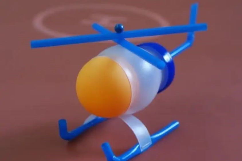 Cố định quả bóng bàn vào miệng hở của chai sữa và gắn cánh quạt lên thân máy bay bằng keo sữa là quá trình làm đồ chơi mầm non từ chai nhựa đã hoàn thành.