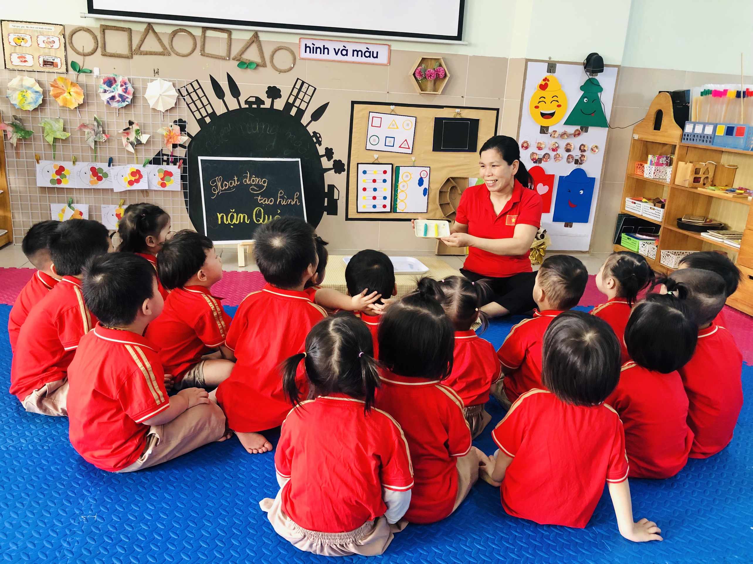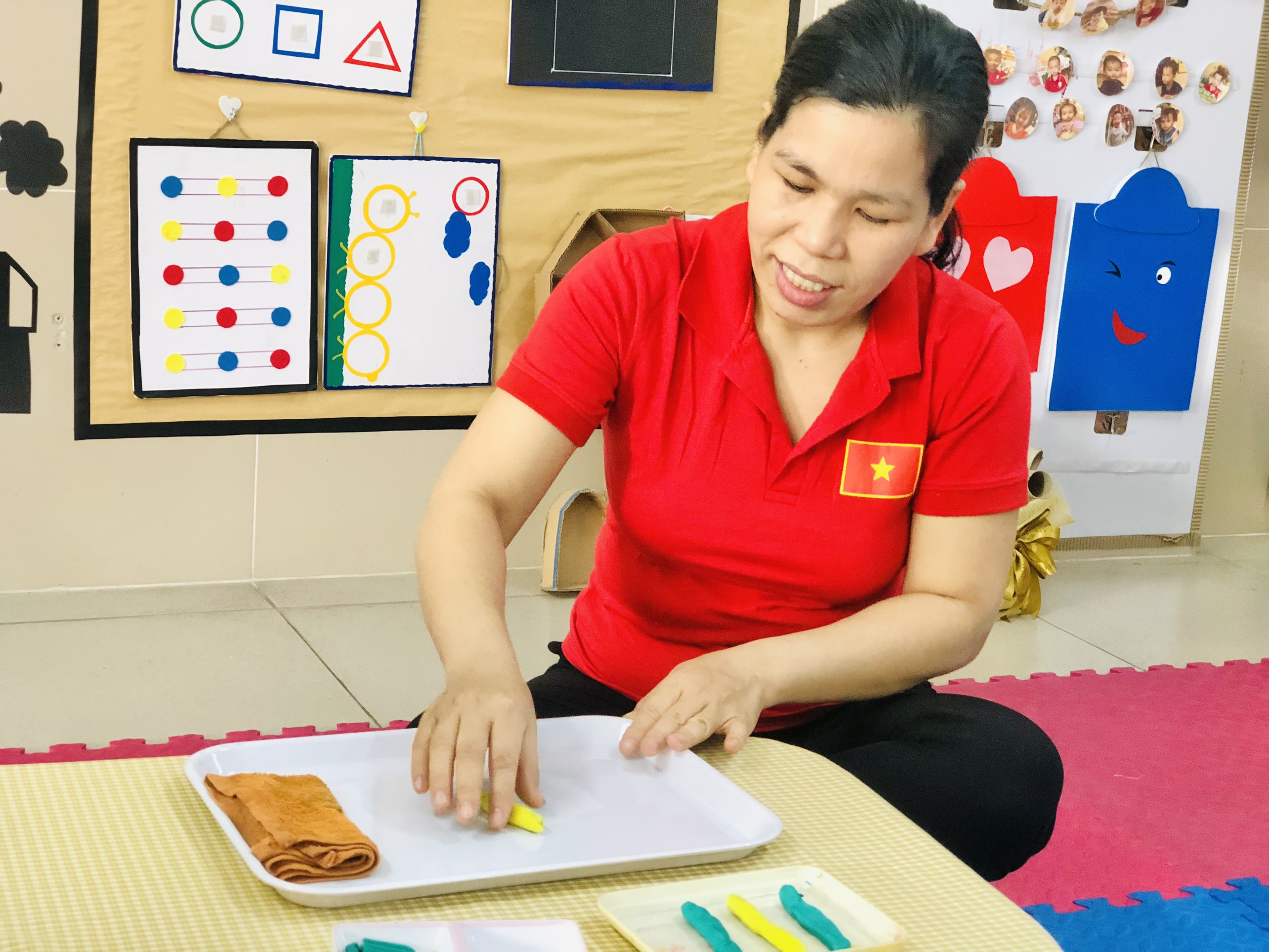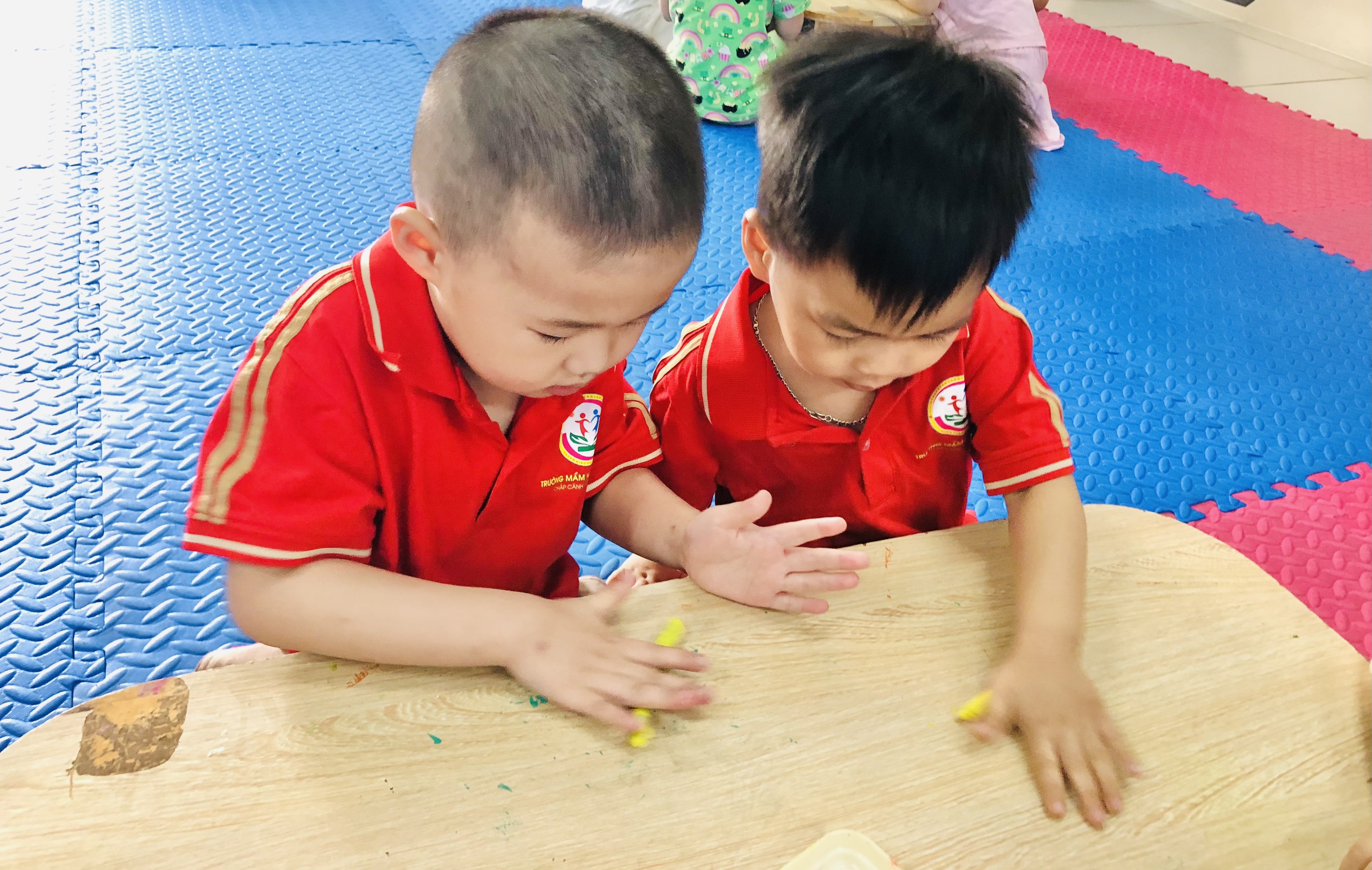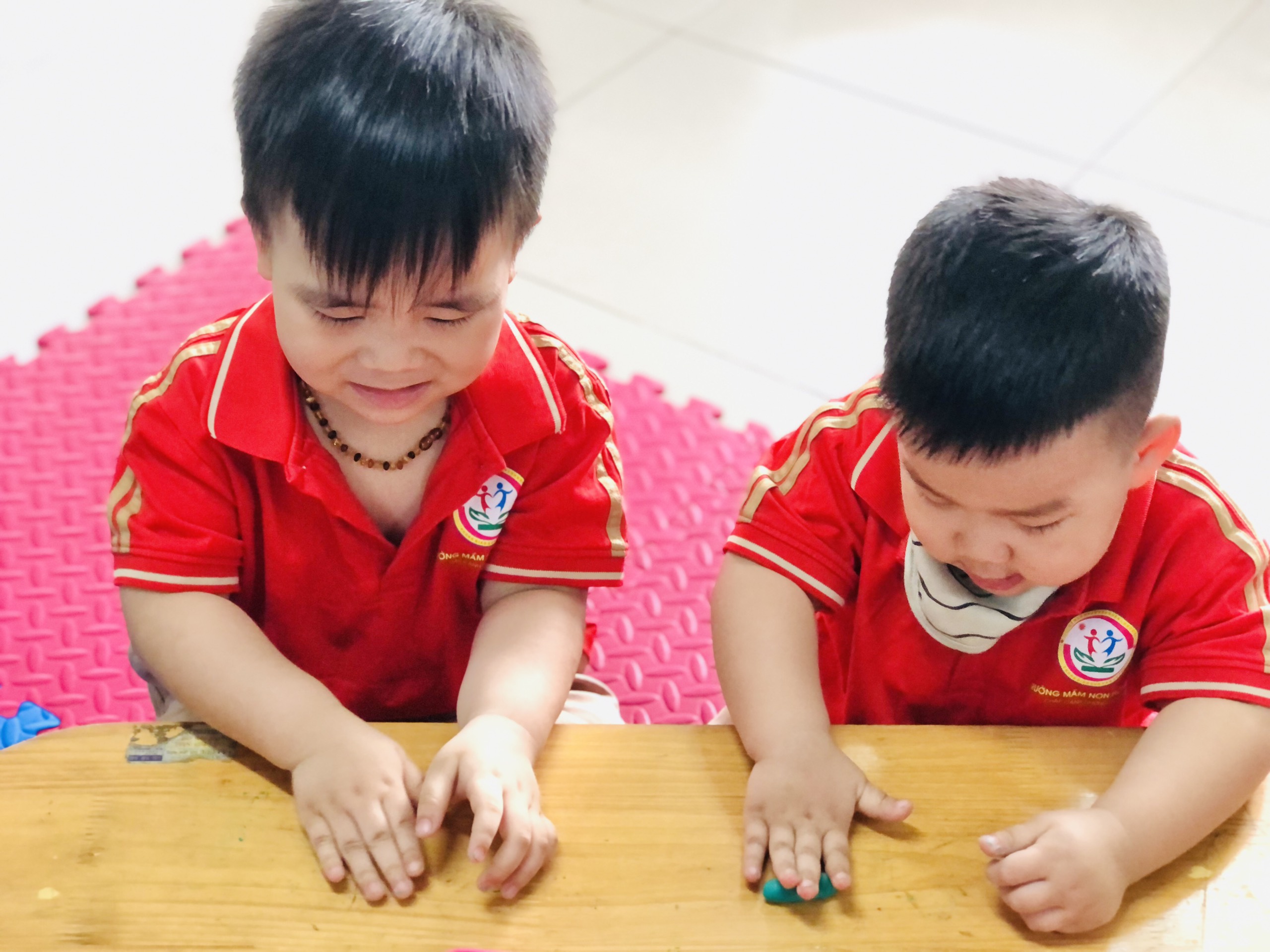 Nhìn những ánh mắt của bé cô biết là các bé rất là háo hức được tham gia hoạt động. Nào hãy nhìn các bé nặn quả đậu dưới sự hướng dẫn của cô nhé.