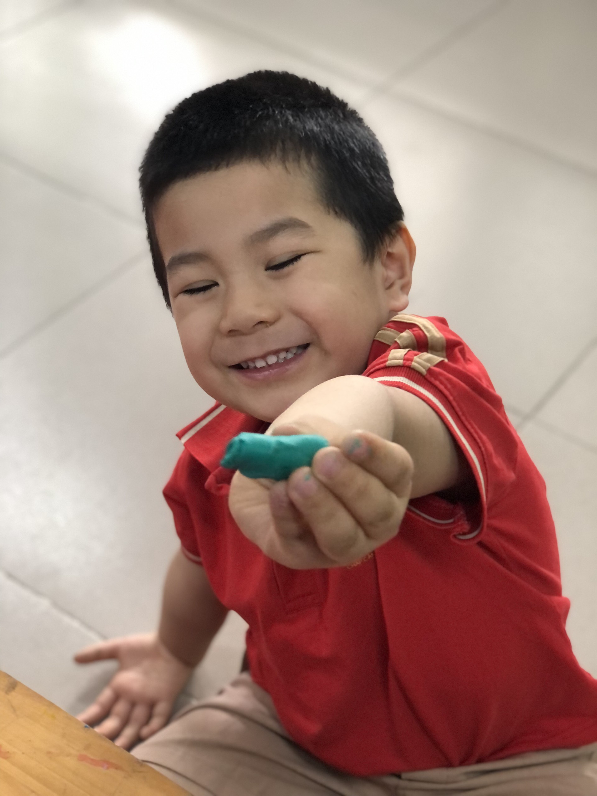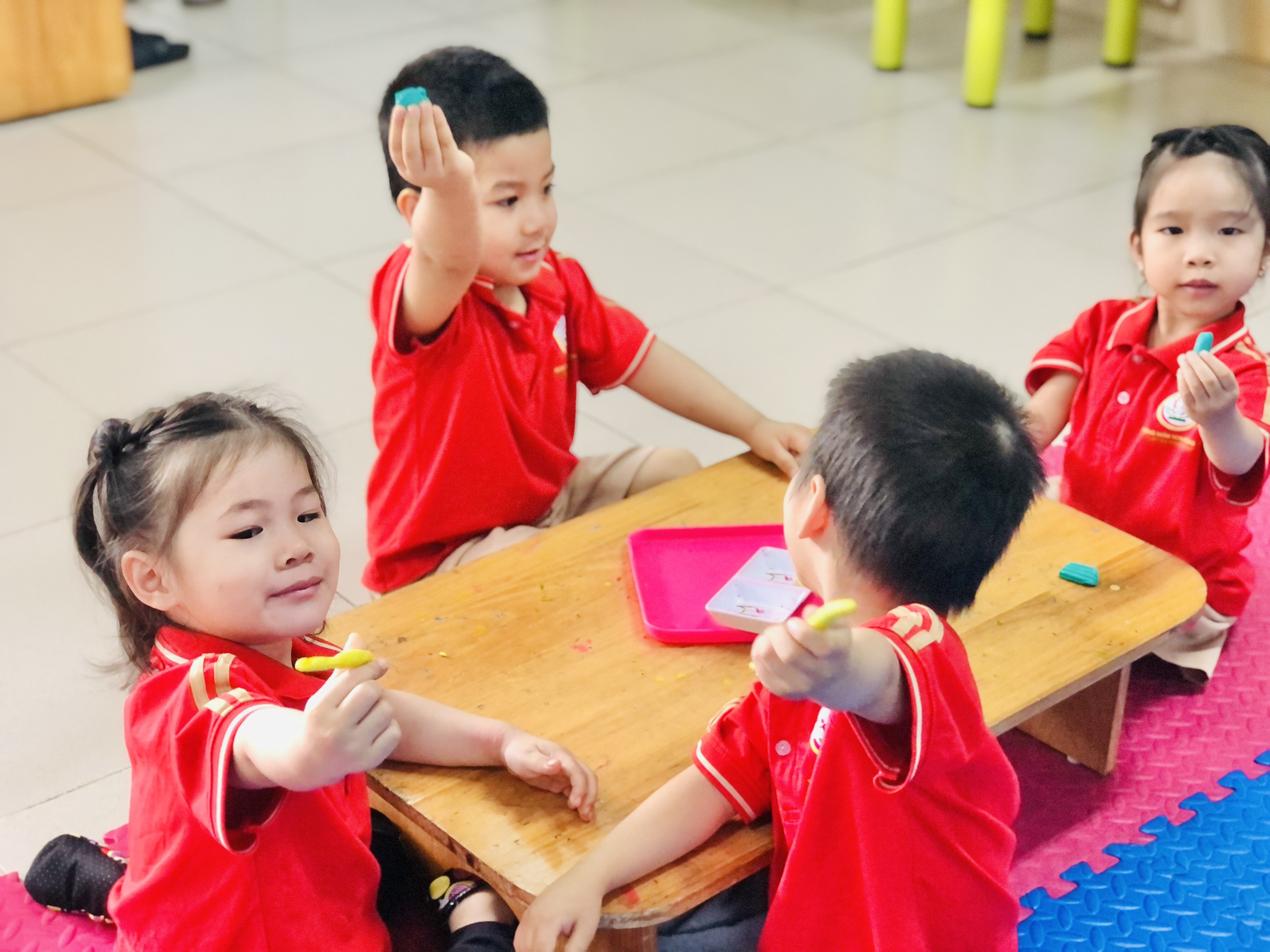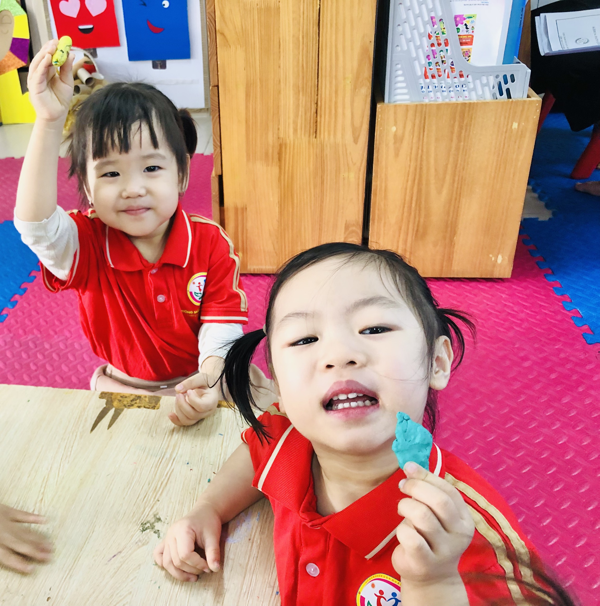Các bé lớp nhà trẻ D2 đã làm quen với đất nặn trong các giờ hoạt động tạo hình trước. Đây là giờ hoạt động bé được tự tay nặn một sản phẩm , đó là quả đậu. Quả đậu có màu xanh, màu vàng. Bé học thêm nhận biết về màu xanh và màu vàng. Cùng đó bé biết được thêm quả đậu được chế biến thành những món ăn rất ngon mà bé thường được ăn đấy. Ăn quả đậu sẽ cung cáp nhiều vitamin và muối khoáng cho cơ thế bé. Vậy là một giờ học mà bé biết được bao nhiêu là điều hay.