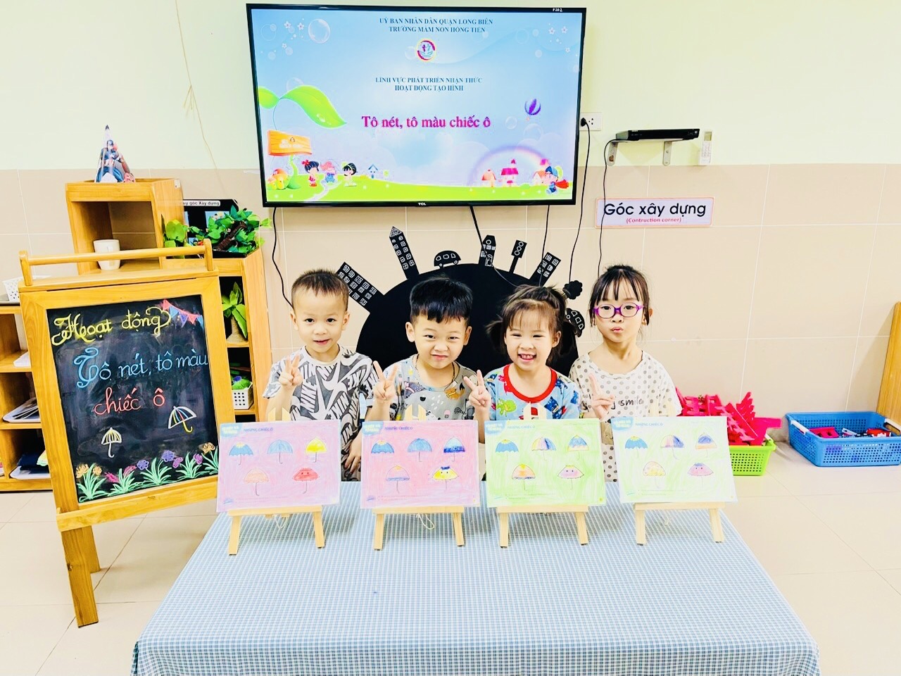 Với đề tài: “Tô nét và tô màu những chiếc ô" các bạn nhỏ lớp MGN B4 đã có những trải nghiệm vô cùng thú vị. Qua hoạt động này giúp các bạn có được những kỹ năng khéo léo như: kỹ năng cầm bút, tô màu, tô không chườm ra ngoài, ngồi ngay ngắn,… cùng với khả năng chú ý, phân biệt màu sắc và các kỹ năng di màu trong hình cái ô, tô kín hình cái ô