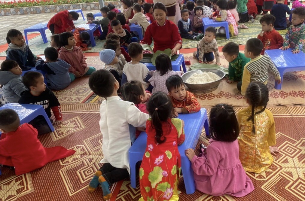 Hoạt động gói bánh chưng giúp các con hiểu được về truyền thống của dân tộc ta tạo cho các con có một ngày Tết vui vẻ, đầm ấm và hạnh phúc bên người thân.