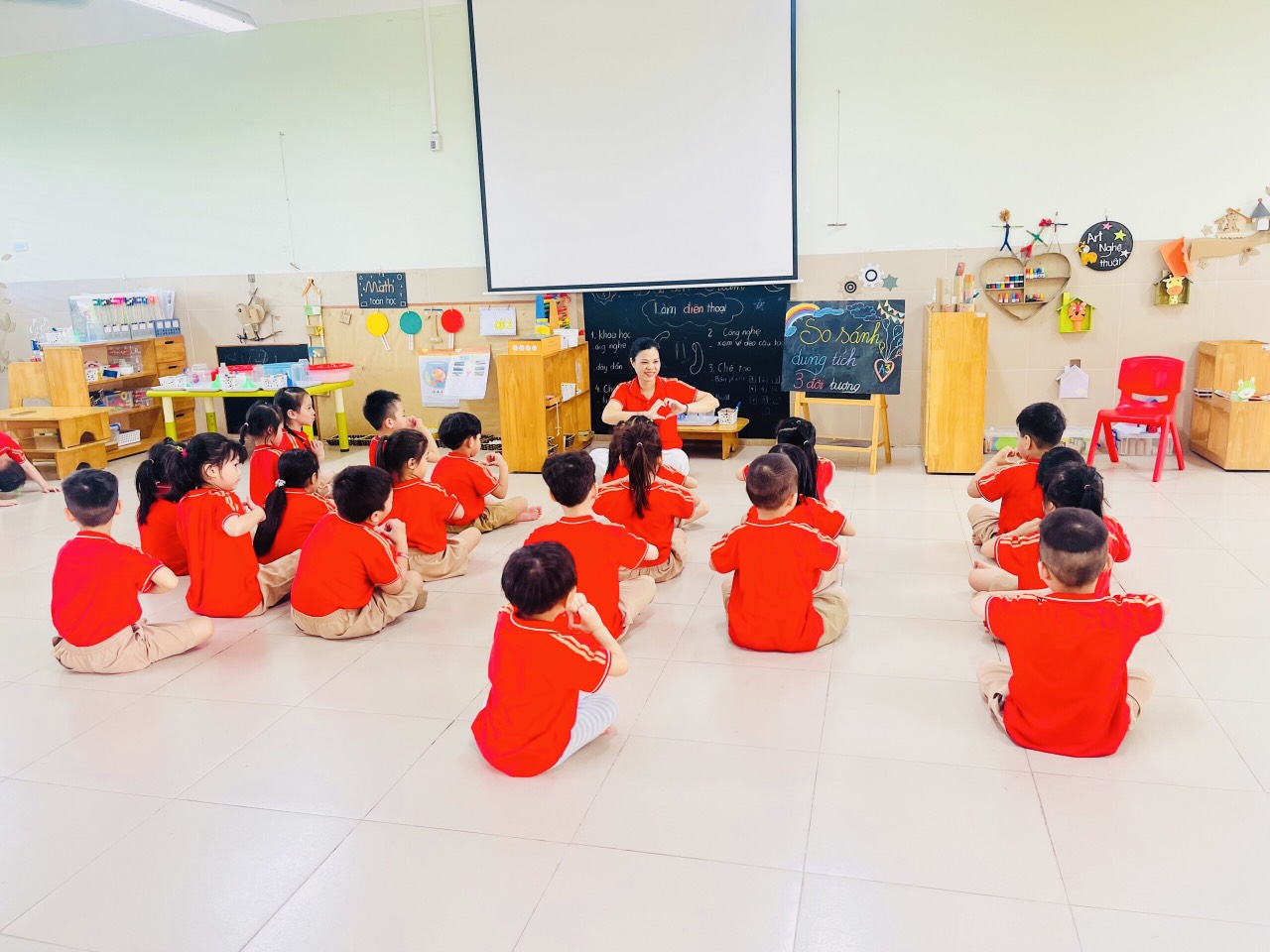 Hình thành các biểu tượng toán học sơ đẳng cho trẻ là một trong những nội dung quan trọng góp phần thực hiện mục tiêu giáo dục mầm non. Trẻ lứa tuổi mẫu giáo đều được làm quen với các biểu tượng về toán như: Số lượng, kích thước, hình dạng, định hướng trong không gian, thời gian, quy tắc sắp xếp… Ngày hôm nay, chúng ta cùng tham gia hoạt động làm quen với toán của các bạn lớp MGL A3 với đề tài “So sánh dung tích của 3 đối tượng” nhé!
