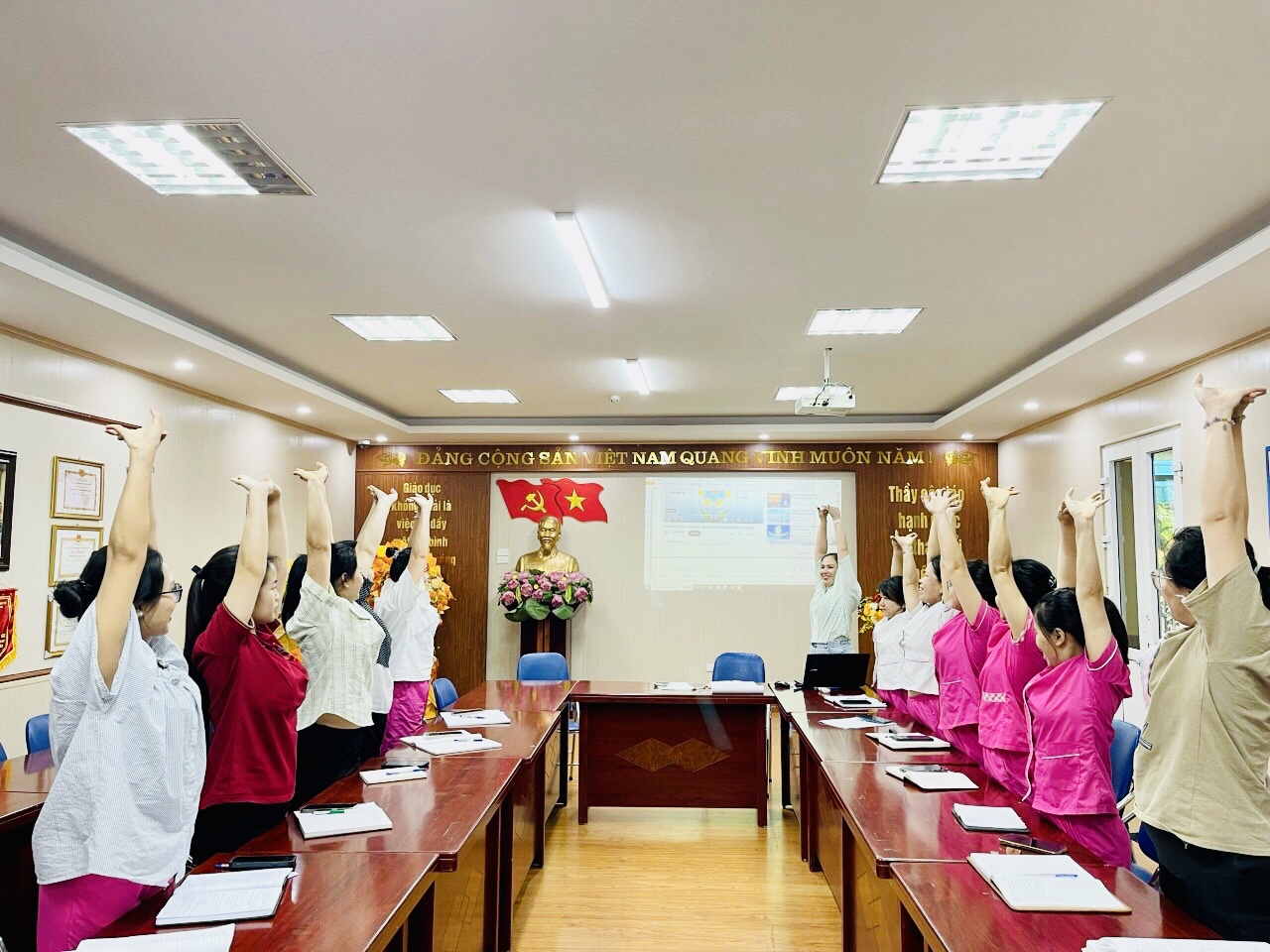 Nhằm phát huy hiệu quả việc tập huấn chuyên môn trong thời gian nghỉ hè và lan tỏa những phương pháp sáng tạo, đổi mới sau khi được tham gia tập huấn các chuyên đề do phòng giáo dục tổ chức. Vì vậy sau khi được tham gia tập huấn chuyên đề" Quản lý lớp học theo phương pháp UNis" tại trường MN Hoa Anh Đào. Ngày 05/8/2024, tổ chuyên môn trường mầm non Hồng Tiến đã tổ chức sinh hoạt chuyên đề “Quản lý lớp học theo phương pháp của trường MN Quốc tế Unis” dành cho 100% giáo viên nhà trường.