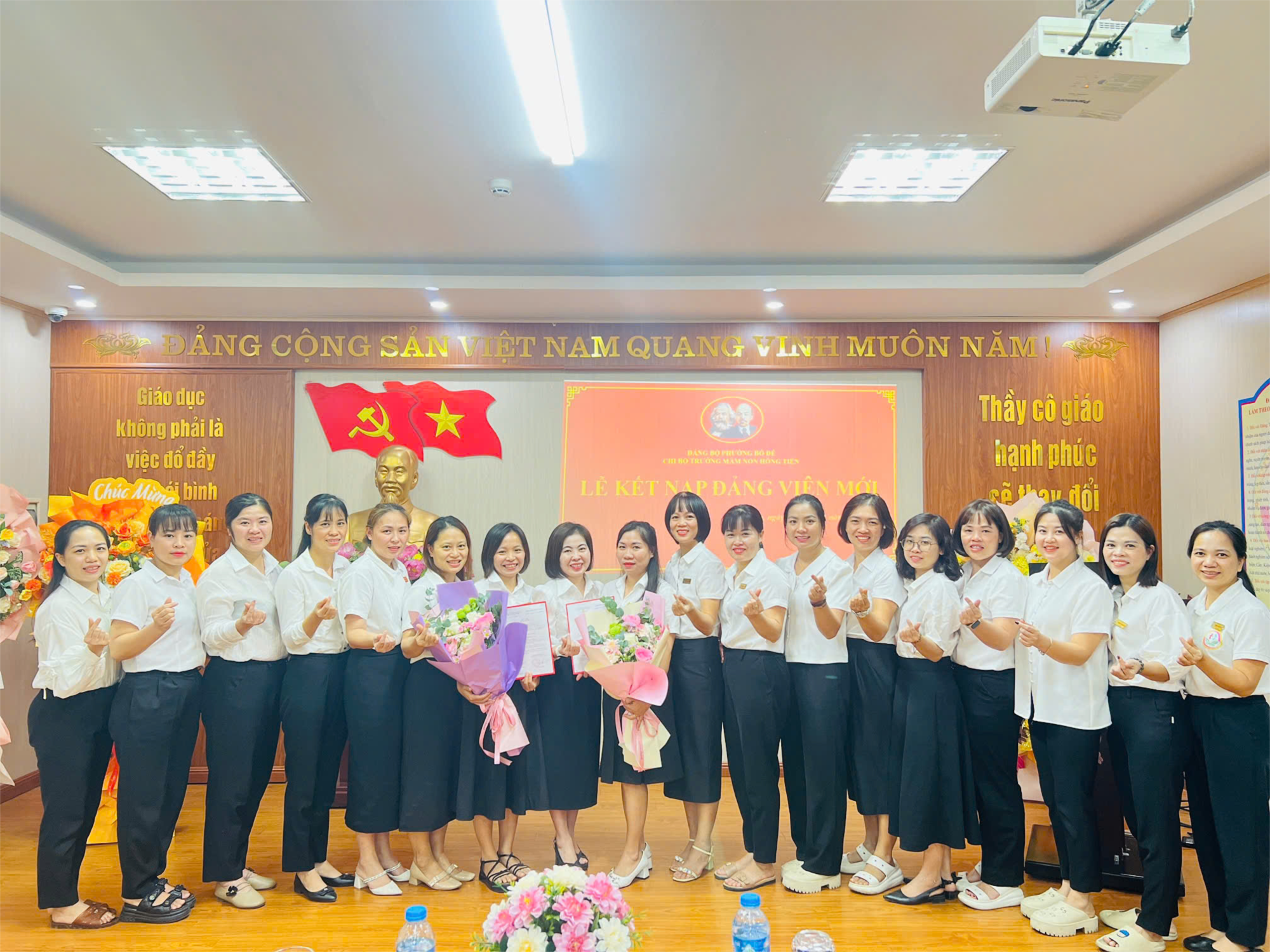 Bồi dưỡng, kết nạp Đảng viên mới là nhiệm vụ thường xuyên, có ý nghĩa quan trọng trong công tác xây dựng Đảng, góp phần phát triển, nâng cao chất lượng và sức chiến đấu. Với ý nghĩa đó, cùng với sự nỗ lực, phấn đấu của bản thân, ngày 20/11/2024, Chi bộ trường mầm non Hồng Tiến đã long trọng tổ chức Lễ kết nạp Đảng viên cho quần chúng Hà Thị Thư và quần chúng Phạm Thị Thuý Mai