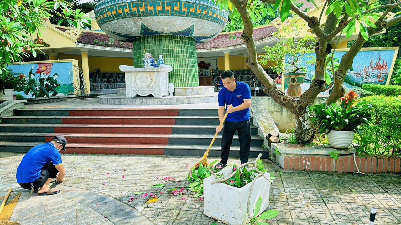 Với tinh thần Đời đời nhớ ơn các anh hùng liệt sỹ, các đồng chí đoàn viên thanh niên đã tiến hành tổng vệ sinh khuôn viên Đài tưởng niệm bằng những việc làm cụ thể: lau chùi, làm sạch bia tưởng niệm, lau rửa lọ hoa, nhổ cỏ trong khuôn viên, cắt tỉa cây cối, vệ sinh, nhặt rác, lá cây ở bồn cây và trên sân trong khuôn viên Đài tưởng niệm. Đoàn TNCS Hồ Chí Minh nói chung và Đoàn thanh niên chi đoàn trường mầm non Hồng Tiến nói riêng nguyện tiếp bước thế hệ cha anh đi trước, nỗ lực vượt qua mọi khó khăn, phấn đấu hoàn thành tốt nhiệm vụ được giao.
