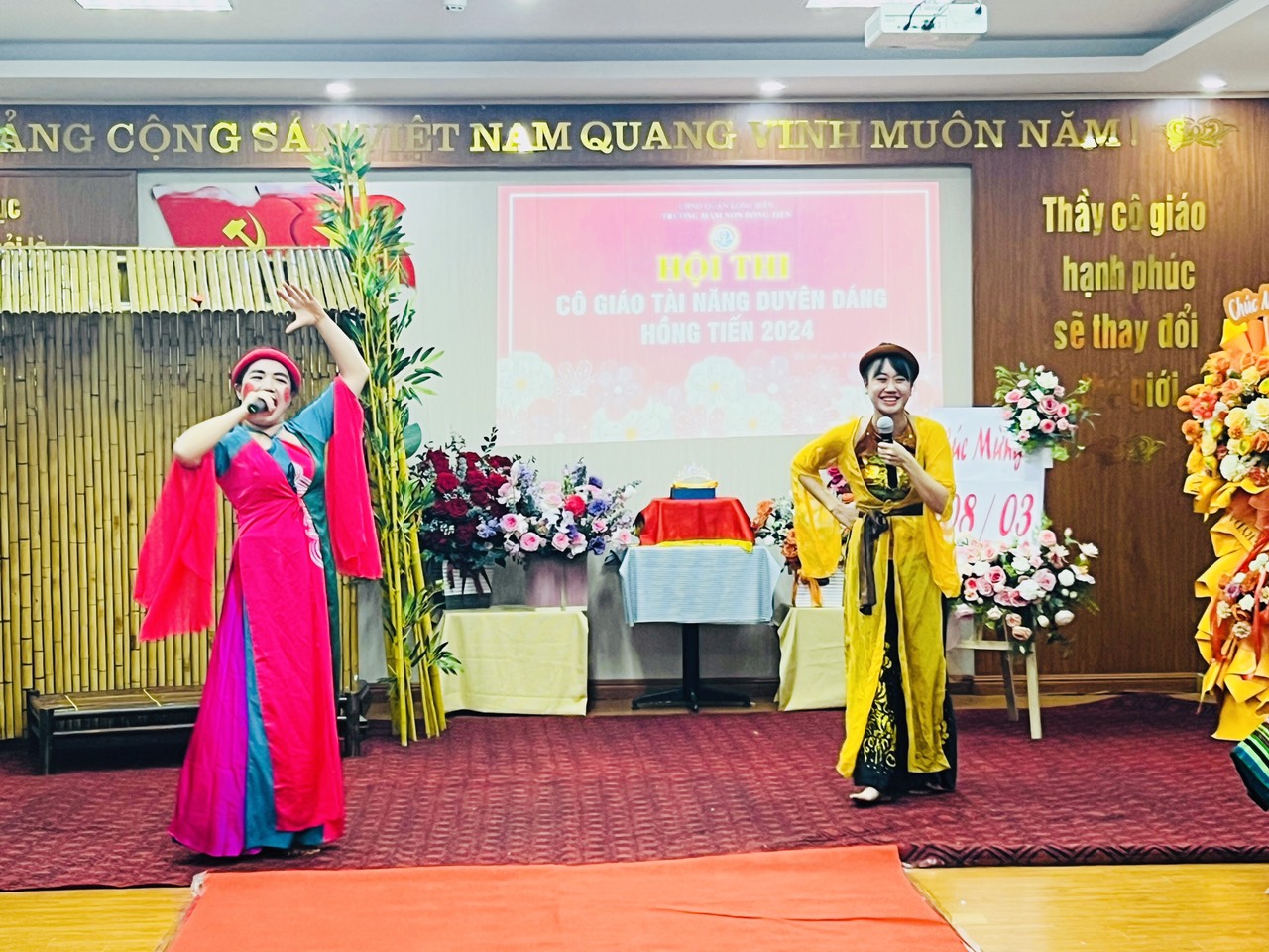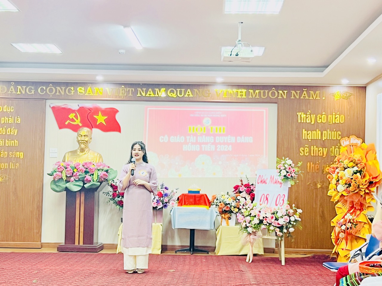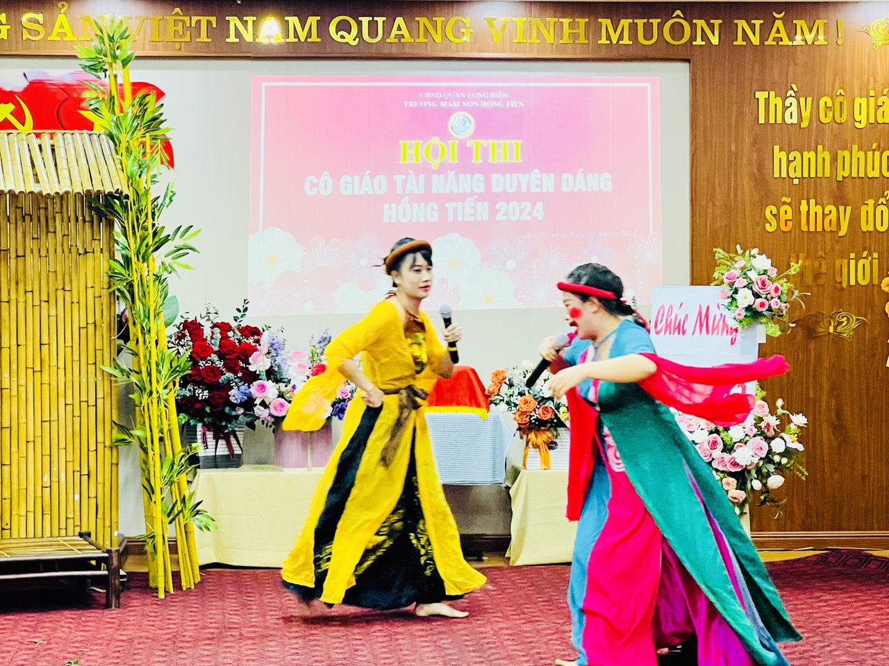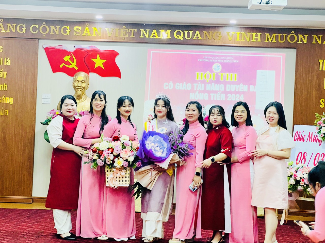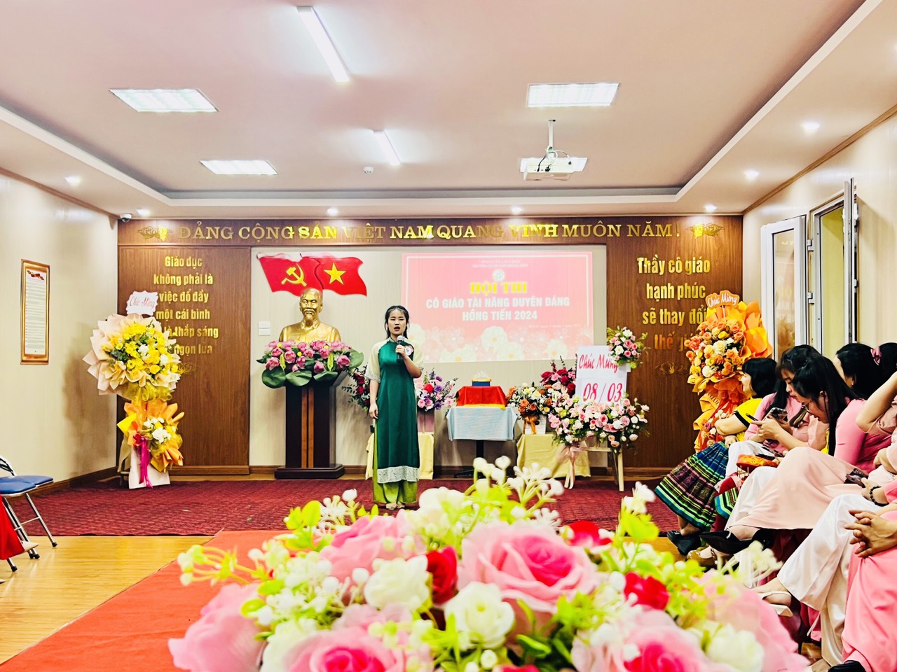 Hòa trong không khí phấn khởi kỷ niệm 114 năm ngày Quốc tế Phụ nữ 8/3, Công đoàn trường mầm non Hồng Tiến tưng bừng tổ chức Hội thi "Cô giáo tài năng duyên dáng" nhằm tôn vinh vẻ đẹp tài năng, trí tuệ, phẩm chất đạo đức, nét đẹp sư phạm của các giáo viên, nâng cao ý thức trách nhiệm của mỗi nhà giáo trong công tác giáo dục và nuôi dưỡng của nhà trường đồng thời cũng tạo điều kiện cho CBGVNV được giao lưu, học tập, nâng cao đời sống văn hóa, tinh thần, góp phần nâng cao kỹ năng sống, gắn kết việc dạy học với thực tiễn đời sống xã hội.