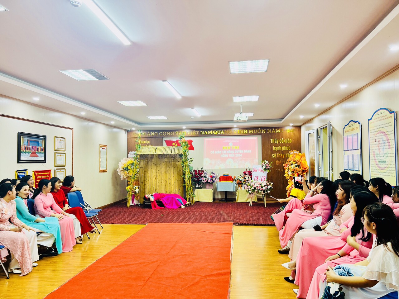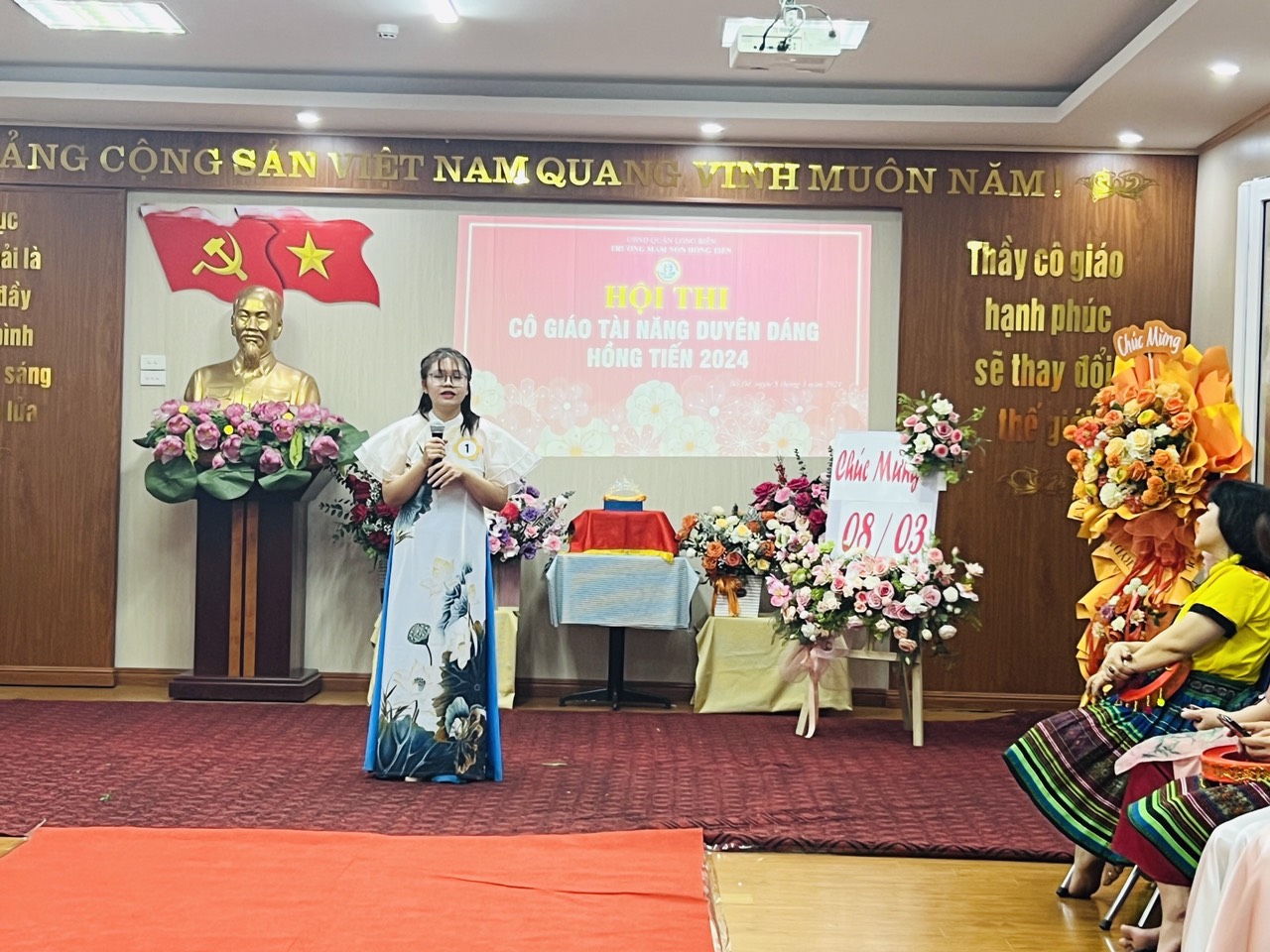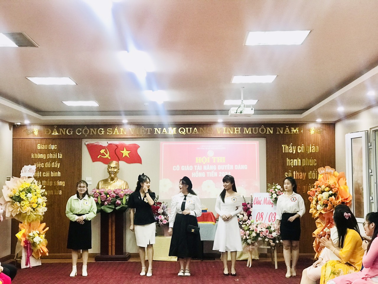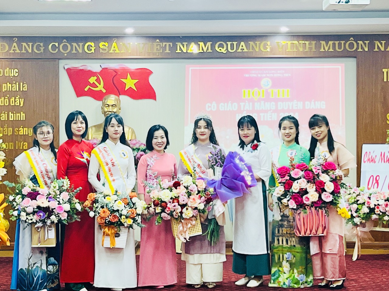 Hòa trong không khí phấn khởi kỷ niệm 114 năm ngày Quốc tế Phụ nữ 8/3, Công đoàn trường mầm non Hồng Tiến tưng bừng tổ chức Hội thi "Cô giáo tài năng duyên dáng" nhằm tôn vinh vẻ đẹp tài năng, trí tuệ, phẩm chất đạo đức, nét đẹp sư phạm của các giáo viên, nâng cao ý thức trách nhiệm của mỗi nhà giáo trong công tác giáo dục và nuôi dưỡng của nhà trường đồng thời cũng tạo điều kiện cho CBGVNV được giao lưu, học tập, nâng cao đời sống văn hóa, tinh thần, góp phần nâng cao kỹ năng sống, gắn kết việc dạy học với thực tiễn đời sống xã hội.