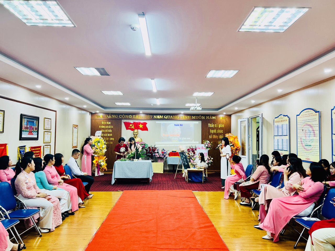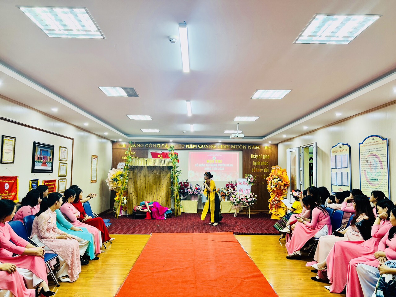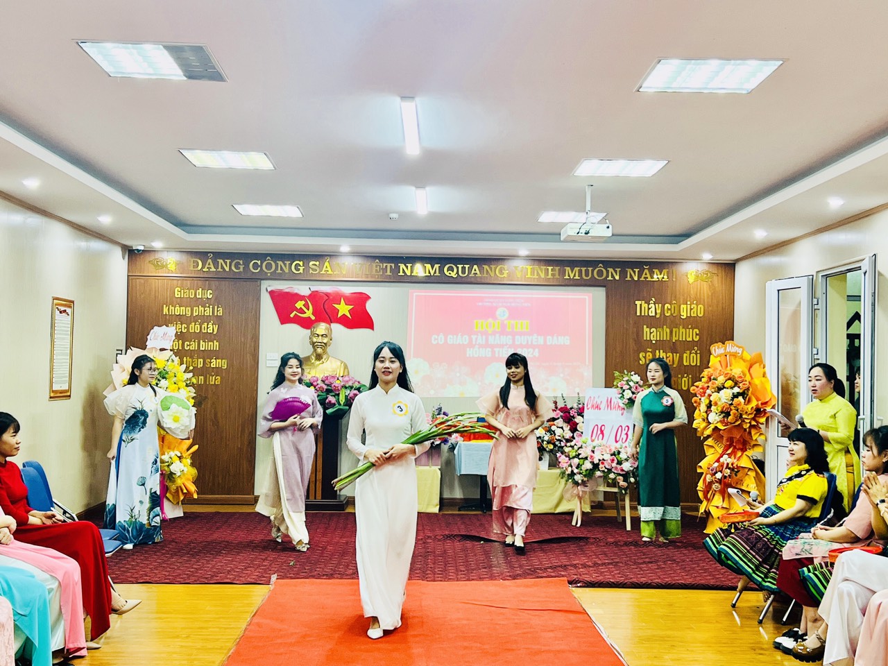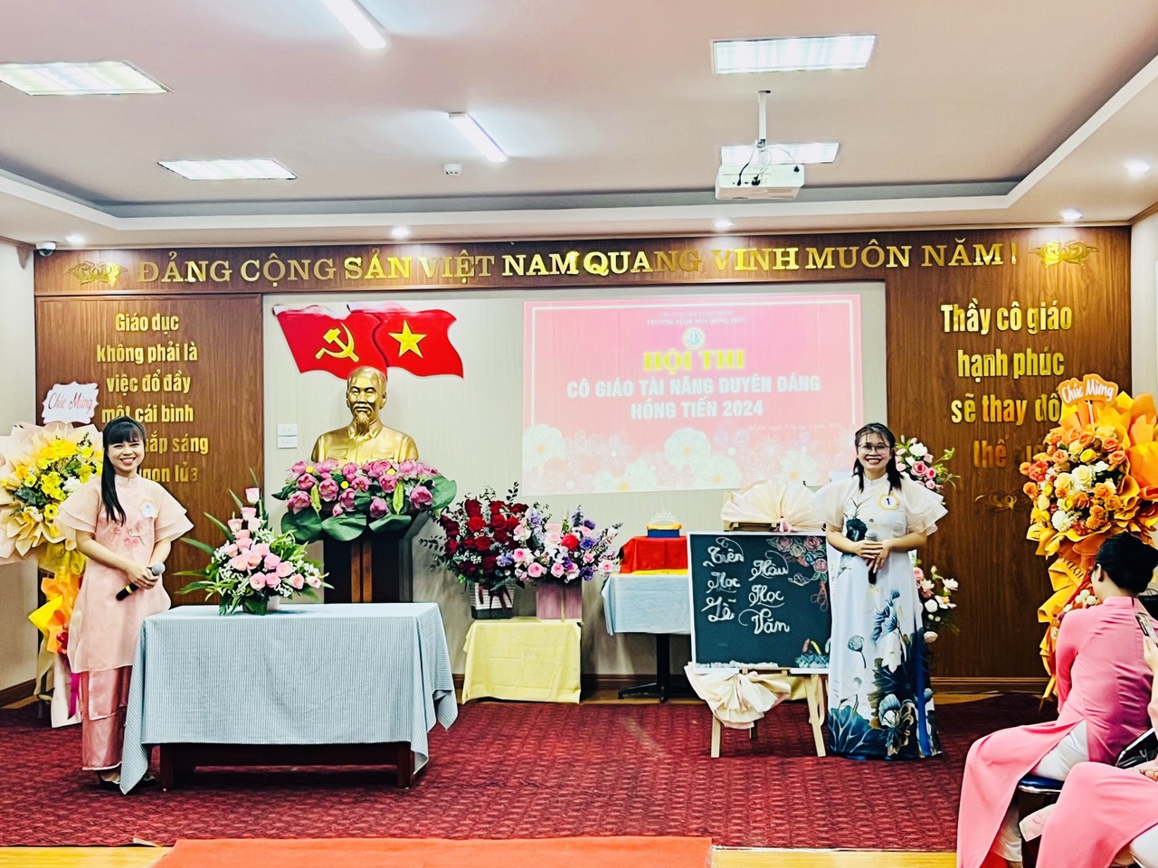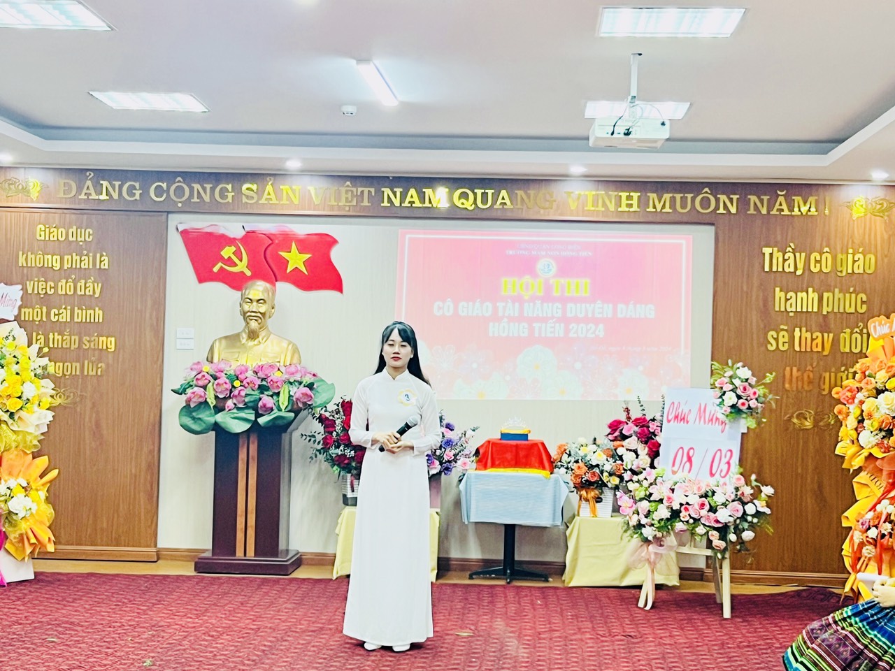 Hòa trong không khí phấn khởi kỷ niệm 114 năm ngày Quốc tế Phụ nữ 8/3, Công đoàn trường mầm non Hồng Tiến tưng bừng tổ chức Hội thi "Cô giáo tài năng duyên dáng" nhằm tôn vinh vẻ đẹp tài năng, trí tuệ, phẩm chất đạo đức, nét đẹp sư phạm của các giáo viên, nâng cao ý thức trách nhiệm của mỗi nhà giáo trong công tác giáo dục và nuôi dưỡng của nhà trường đồng thời cũng tạo điều kiện cho CBGVNV được giao lưu, học tập, nâng cao đời sống văn hóa, tinh thần, góp phần nâng cao kỹ năng sống, gắn kết việc dạy học với thực tiễn đời sống xã hội.
