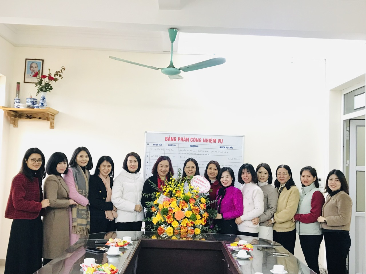 Trong ngày, thay mặt Tập thể CBGVNV nhà trường cũng gửi tặng bó hoa tươi thắm tới đồng chí Nguyễn Thị Thanh Hương - Nhân viên y tế nhà trường.