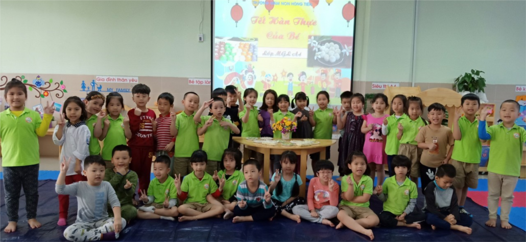 Và để hưởng ứng tết Hàn thực các bé trường MN hồng Tiến vô cùng thích thú khi được tham gia thực hành nặn bánh trôi, bánh chay. Trước khi bắt tay vào làm, các bé được nghe cô giáo kể về ý nghĩa của ngày Tết Hàn Thực, được nghe cô giáo giới thiệu rất kĩ về nguyên liệu, cách làm bánh trôi, bánh chay. Sau khi rửa tay sạch sẽ, các bé sẽ được bắt tay vào tự nặn bánh trôi theo hướng dẫn của cô giáo, nên khi thực hành nặn bánh chẳng bạn nào bỡ ngỡ. Những kĩ năng xoay tròn, ấn bẹt đã được học ở tiết tạo hình, nên thao tác ngắt bột, ấn đường, xoay tròn để cho ra sản phẩm là những viên bánh trôi trắng phau, tròn vo chẳng khó khăn tẹo nào với các bạn nhỏ của trường mầm non Hồng Tiến. Đặc biệt,các bé tỏ ra rất thích thú khi được học hỏi thêm về phong tục cổ truyền của dân tộc, tự tay làm một món ăn truyền thống đặc trưng của ngày Tết Hàn Thực. Ánh lên trên từng khuôn mặt là sự hào hứng của các bé, bạn nhỏ nào cũng hăng say tự nặn và liên tục khoe với cô và các bạn thành quả của mình. Không khí của buổi thực hành rất vui nhưng không kém phần nghiêm túc. Sau khi bánh nặn xong các cô chú nhà bếp đã giúp các bé luộc chín bánh để các bạn nhỏ được cùng nhau thưởng thức bánh trôi do chính tay mình làm. Bạn nào cũng vô cùng phấn khởi và thích thú.