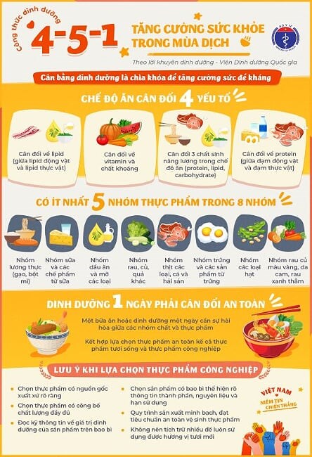 Theo Viện Dinh dưỡng Quốc gia thì cân bằng dinh dưỡng là chìa khóa để tăng cường sức đề kháng. Việc chủ động tăng cường sức đề kháng là rất cần thiết để phòng chống dịch hiệu quả.