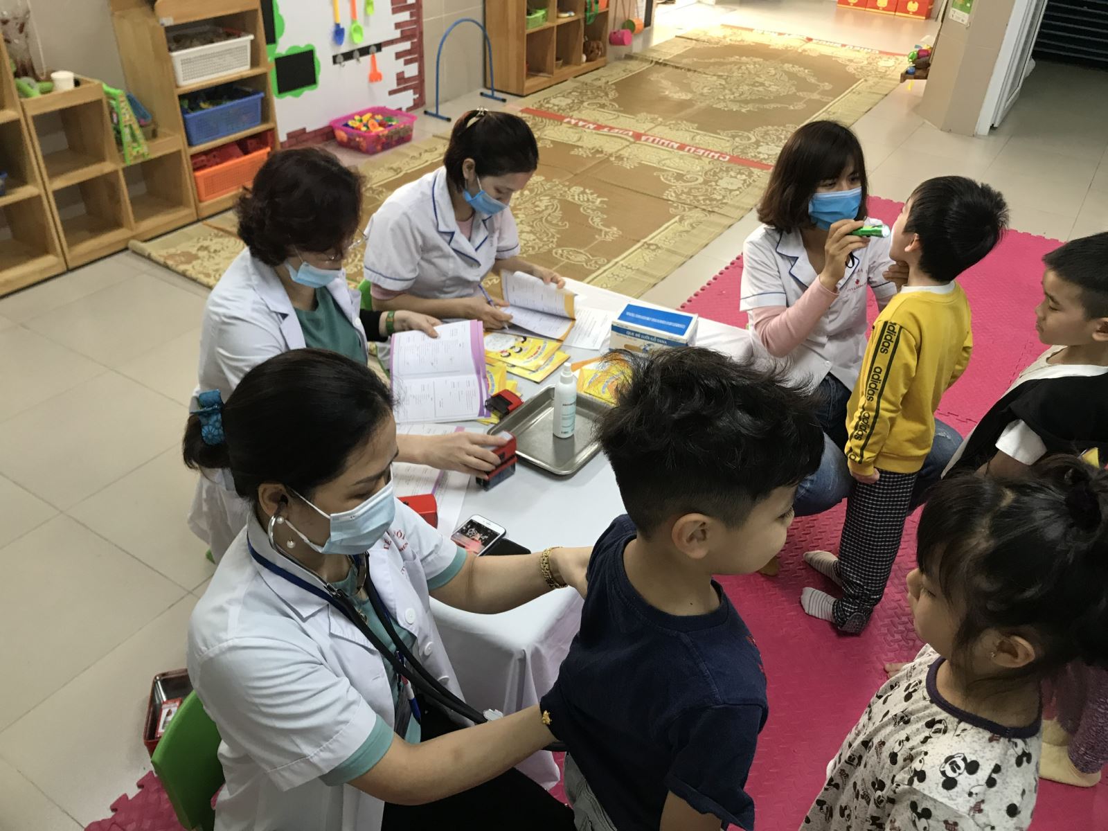 Tham gia vào buổi khám bệnh, học sinh các lớp đã được cán bộ y tế phường khám mắt, răng, miệng, cân nặng, chiều cao, đo nhịp tim... Có sổ khám bệnh, hồ sơ quản lý, theo dõi tình hình sức khỏe học sinh. Kết quả kiểm tra sức khoẻ của học sinh đã được cán bộ y tế phường ghi chép cụ thể cập nhật luôn trong sổ theo dõi sức khỏe. Giáo viên các lớp thông báo đến phụ huynh tình hình sức khoẻ của trẻ, đặc biệt một số học sinh mắc bệnh đã được giáo viên chia sẻ thông tin tình hình sức khỏe để gia đình có kế hoạch chăm sóc và điều trị cho học sinh kịp thời.