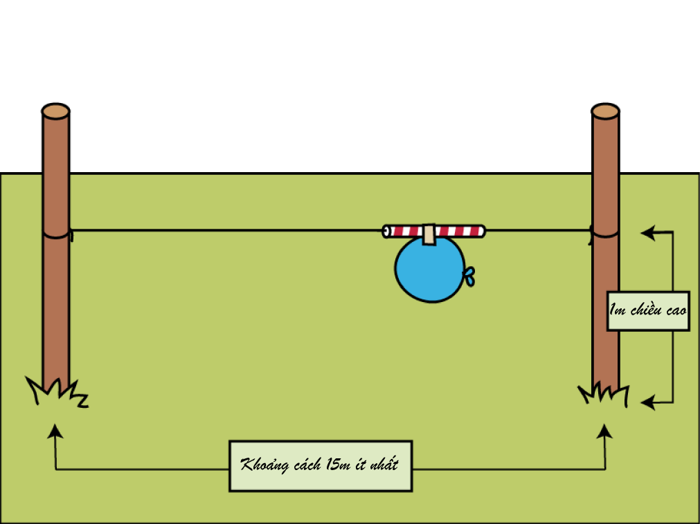 - 2 Cột trụ ( Cao ít nhất 1m và đặt cách nhau ít nhất 15m)