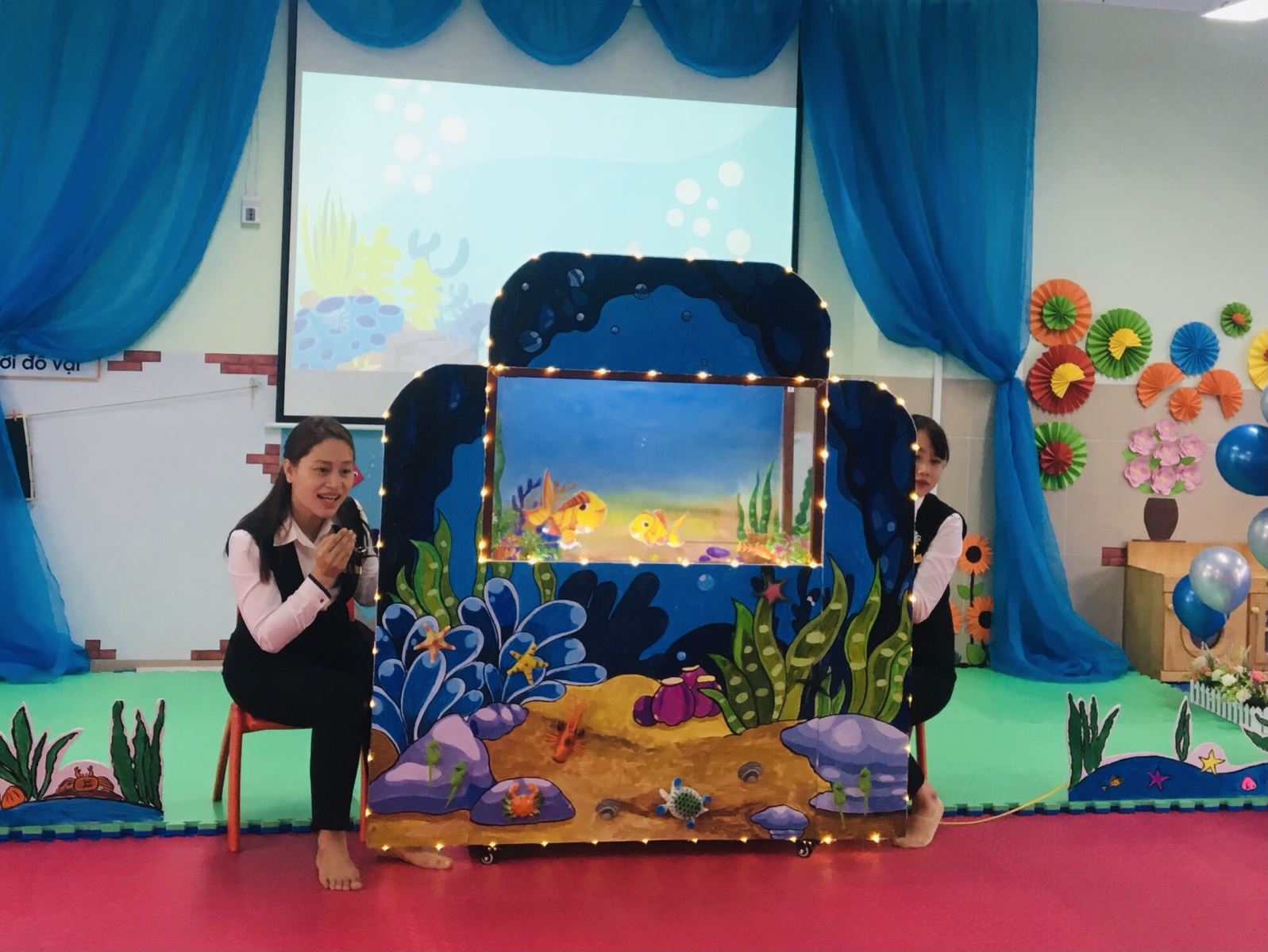 Tham dự Hội thi này, cô giáo Vũ Thị Thu Hằng dạy lớp MG Nhỡ (4-5 tuổi) đã thực hiện hoạt động Tạo hình "Làm túi thay túi nilon đi chợ". Với lòng nhiệt huyết, yêu nghề, mến trẻ cùng sự sáng tạo trong hoạt động dạy, cô giáo đã vận dụng phương pháp Steam để cuốn hút trẻ thực hiện hoạt động một cách say mê. Còn cô giáo Nguyễn Thị Lan Anh dạy lớp Nhà trẻ D1 (24-36 tháng) đã thực hiện hoạt động Làm quen văn học - Truyện " Chú cá vàng" đem đến cho trẻ nguồn cảm hứng yêu thích cái đẹp và bài học bổ ích giáo dục trẻ. Nhân viên nuôi dưỡng Chu Thị Thanh Huyền tham gia dự thi với công việc thường xuyên làm hàng ngày tại bếp ăn, từ giao nhận thực phẩm, cân chia thực phẩm, sơ chế, chế biến món ăn, lưu nghiệm thức ăn, chia định lượng thức ăn theo số suất ăn của trẻ từng lớp, phối hợp với đồng nghiệp thực hiện tốt dây chuyền làm việc của tổ nuôi.