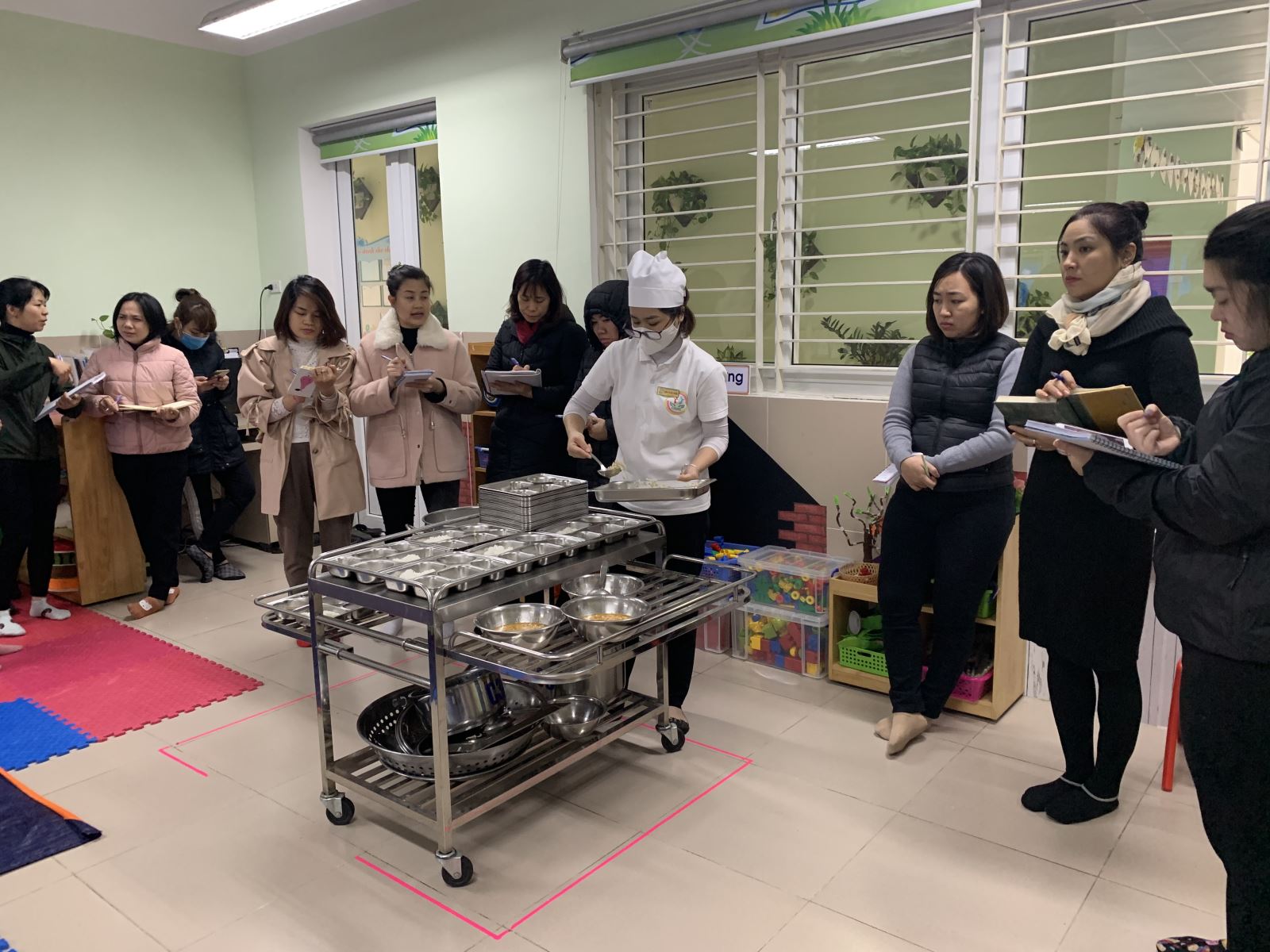 Trong 2 ngày kiến tập 7,8/1/2021 nhà trường đã thực hiện 04 giờ hoạt động tổ chức ăn cho trẻ tại lớp nhà trẻ D1 lớp mẫu giáo bé C3, Mẫu giáo nhỡ B3 và mẫu giáo lớn A3.