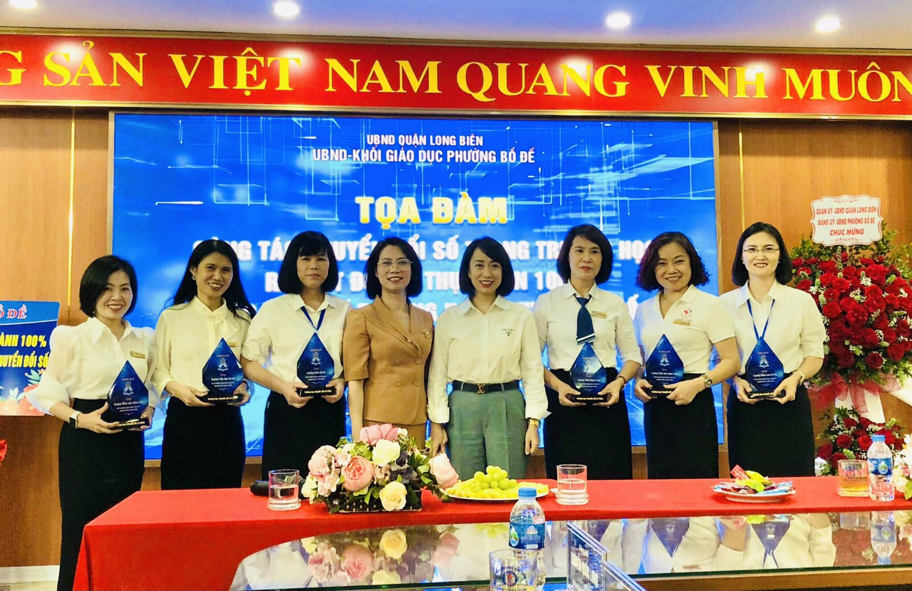 Tại buổi tọa đàm đồng chí Đinh Thu Thủy - Phó hiệu trưởng nhà trường tham luận về việc thực hiện các giải pháp "THU NỘP HỌC PHÍ KHÔNG DÙNG TIỀN MẶT" đã mang lại được rất nhiều hiệu quả và được lãnh đạo đánh giá cao. Mong rằng mô hình trường học điện tử, cơ sở giáo dục chuyển đổi số ngày được nhân rộng, không chỉ trên địa bàn phường Bồ Đề mà còn được triển khai trên toàn quận Long Biên