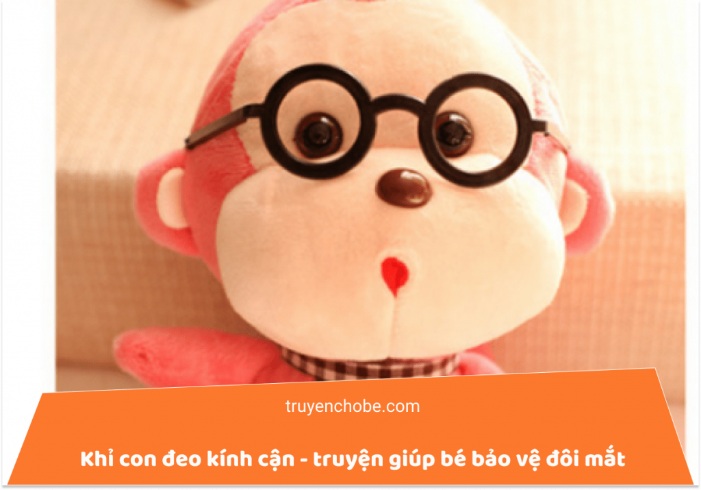 Khỉ con đeo kính cậnKhỉ con nghe vậy liền gật đầu đồng ý . Chiếc kính mắt lập tức vui vẻ nhảy lên mũi khỉ con. Đeo kính chưa được mấy ngày mà khỉ con đã cảm thấy rất bất tiện và cũng rất khó chịu . Sau khi hai người bạn của khỉ con là thỏ trắng và hươu cao cổ biết được chuyện này đã đến nhà khỉ con . Hươu cao cổ thân thiết nói : “ Khỉ con ơi , bạn hãy nhớ kỹ rằng khi đọc sách và viết chữ phải luôn giữ cho mắt cách sách một thước . Ngực cách bàn một nắm tay và khi cầm bút phải cầm cách ngòi bút một tấc nhé ” .