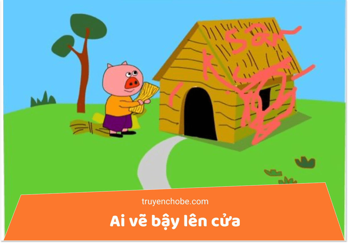 Ánh mặt trời buổi sáng chiếu khắp muôn nơi . Lợn con thức dậy thật sớm , nó chạy ra sân tập thể dục . “ Á , ai viết bậy trên cửa nhà mình thế nhỉ ? ”