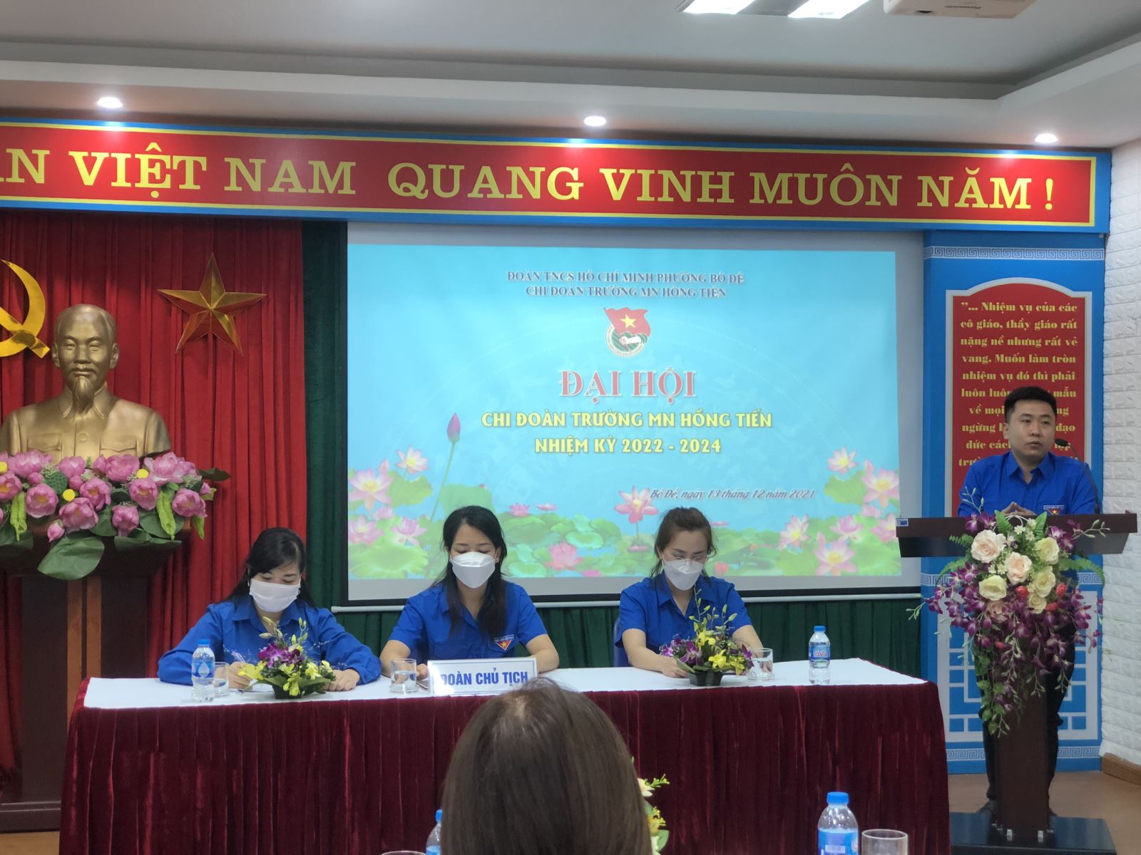 Ngày 13/12/2021, được sự đồng ý của Chi bộ MN Hồng Tiến và Ban chấp hành Đoàn phường Bồ Đề, chi đoàn MN Hồng Tiến tiến hành đại hội chi đoàn nhiệm kỳ 2022 - 2024 với mục đích tổng kết hoạt động của chi đoàn trong nhiệm kỳ 2019 - 2021, đề ra phương hướng hoạt động nhiệm kỳ 2022 - 2024, bầu BCH chi đoàn nhiệm kỳ mới để lãnh đạo chi đoàn thực hiện các nhiệm vụ của Đoàn cấp trên và nhiệm vụ chính trị tại nhà trường.
